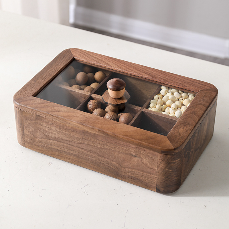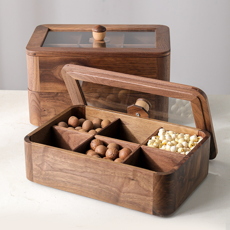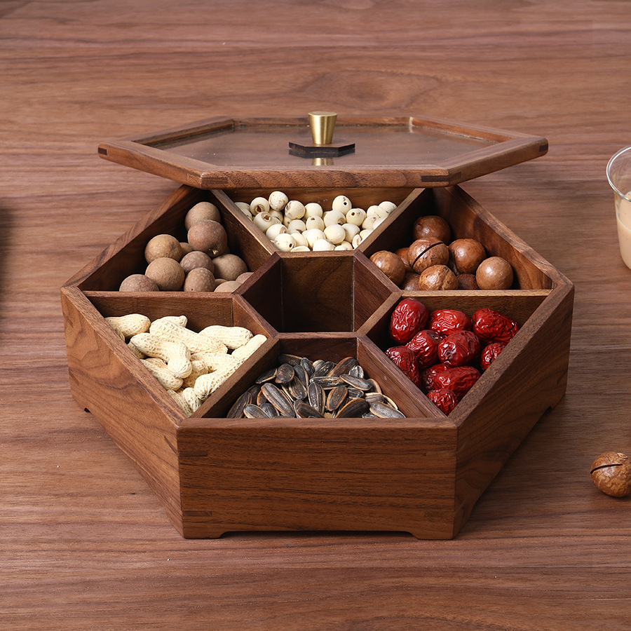 새해 단단한 나무 말린 과일 상자 뚜껑 말린 과일 접시 새로운 중국 나무 과일 상자 결혼식 매일 검은 호두 상자