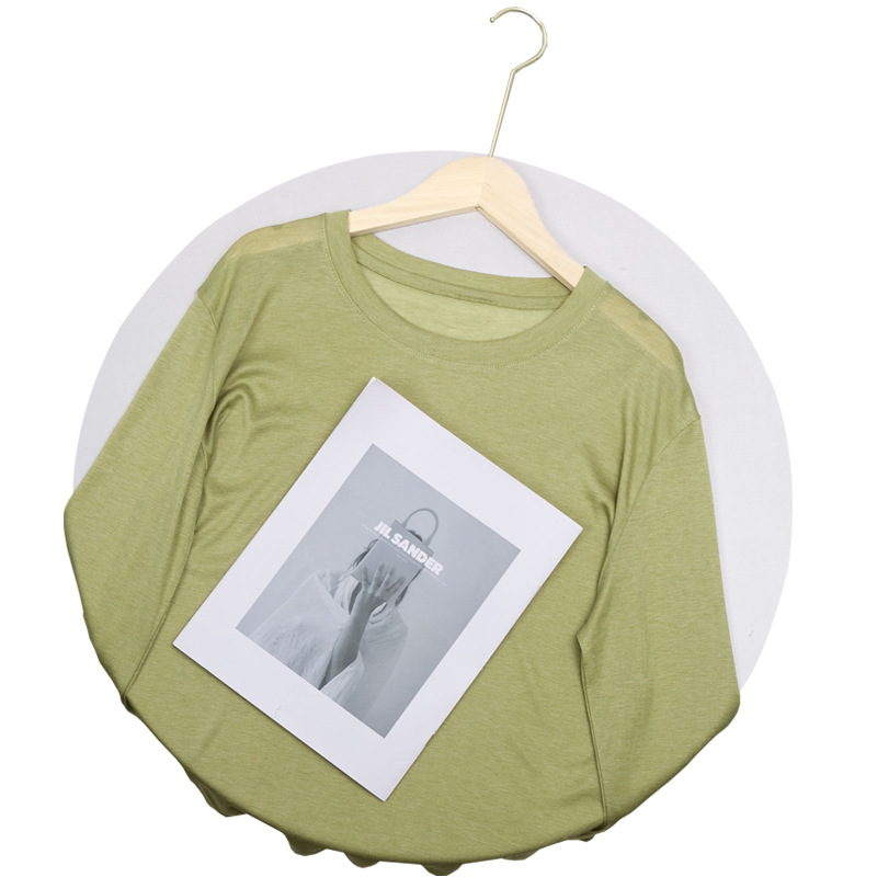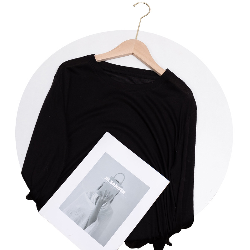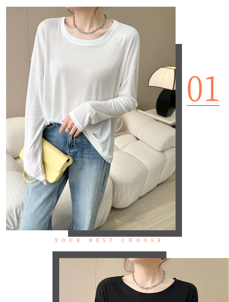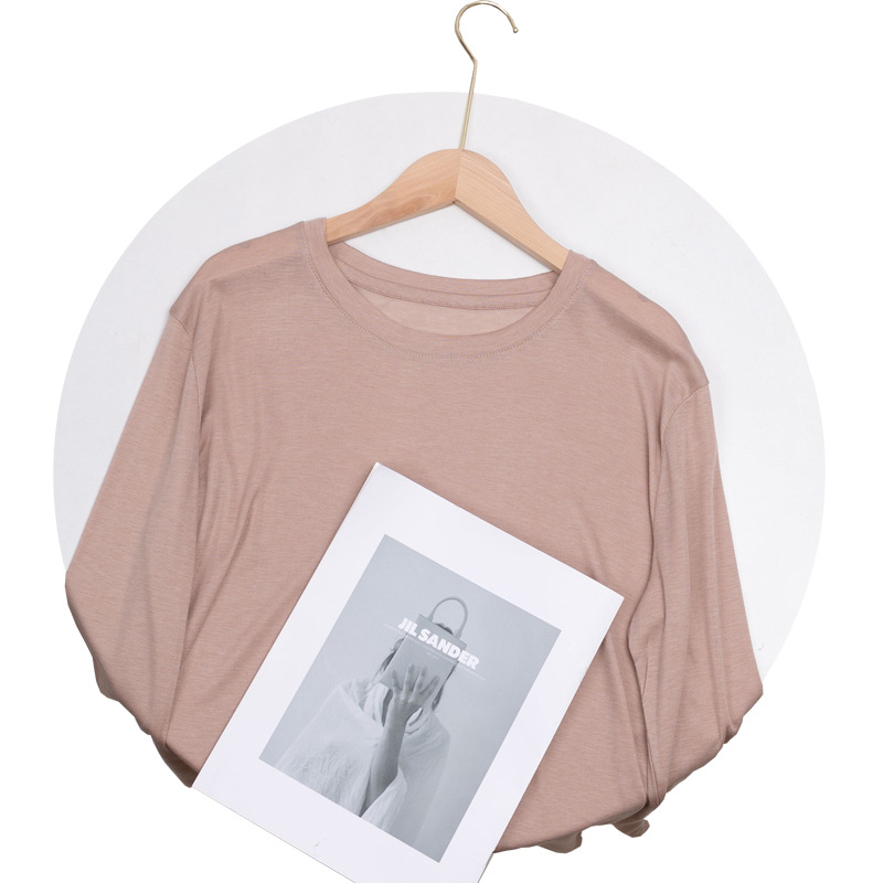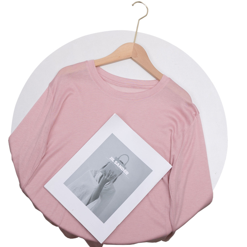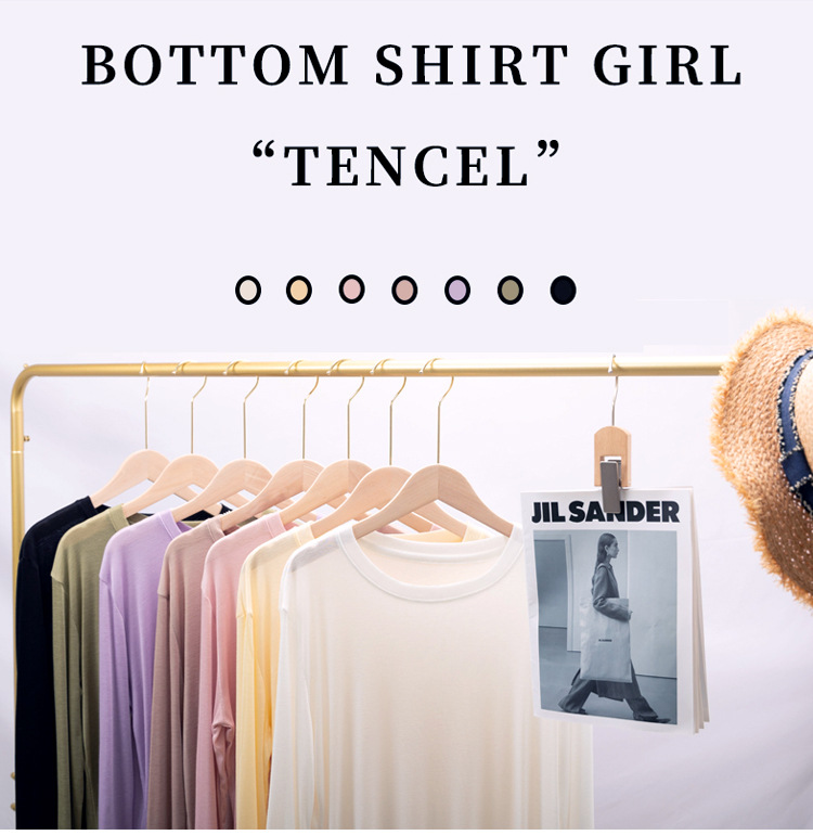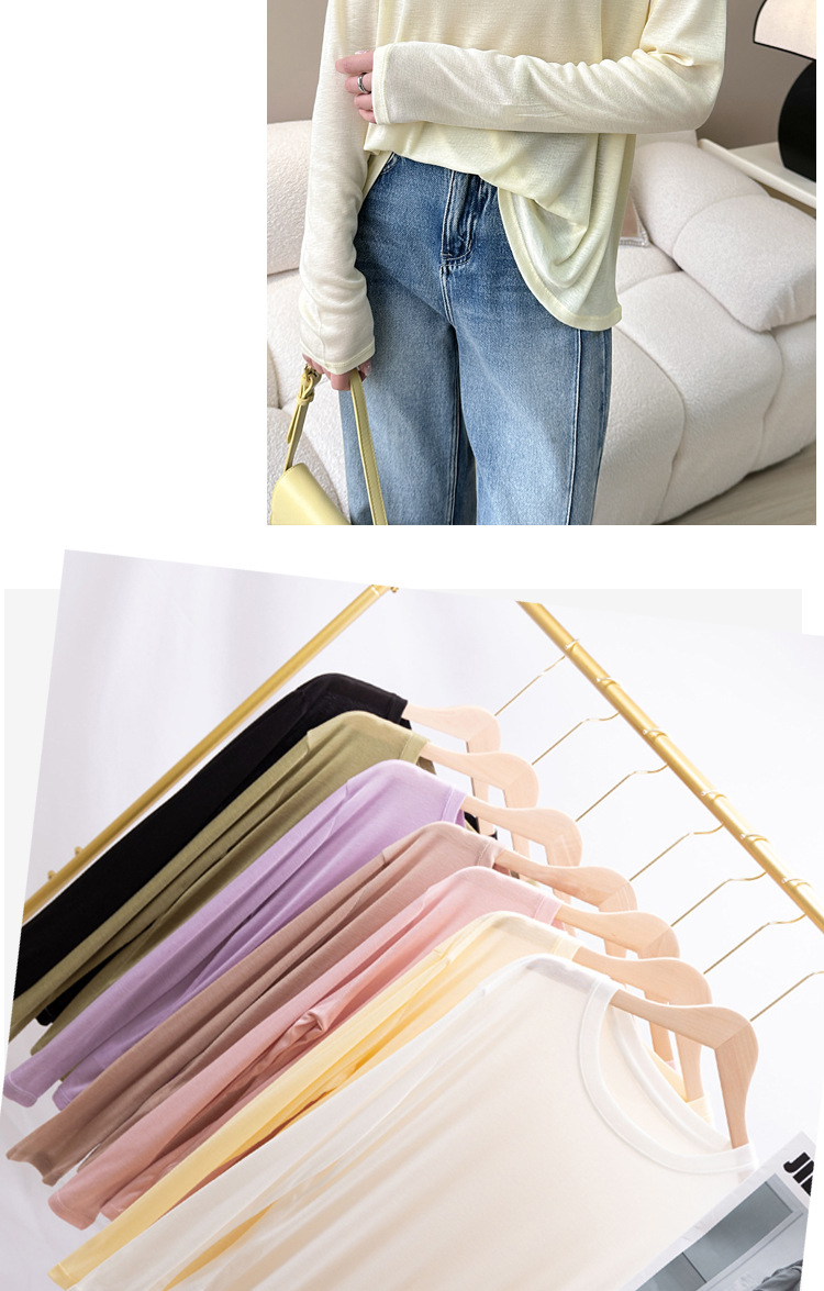 리오셀 텐셀 베이스 셔츠 여성용 라운드 넥 경량 느슨한 한국 스타일 모든 매치 내부 자외선 차단제 긴팔 여성 마스크 의류스토어 가기