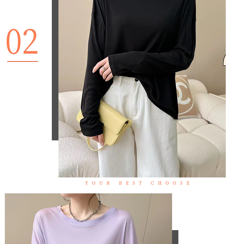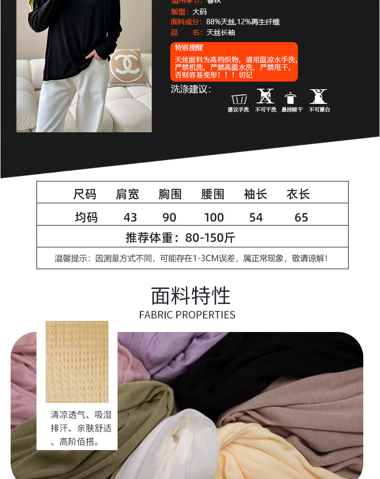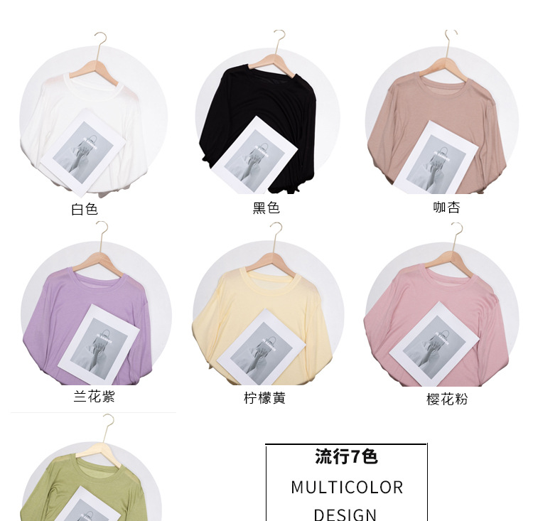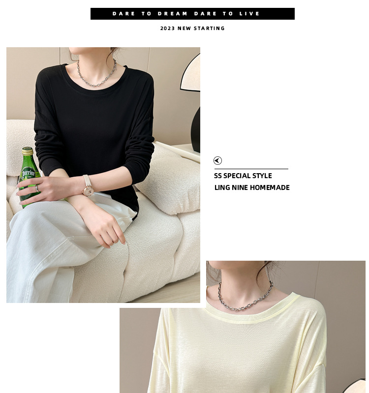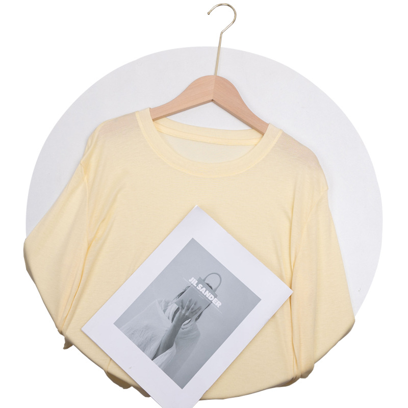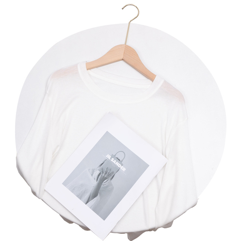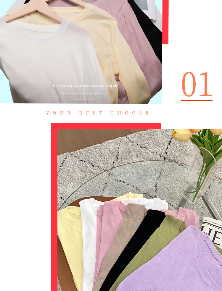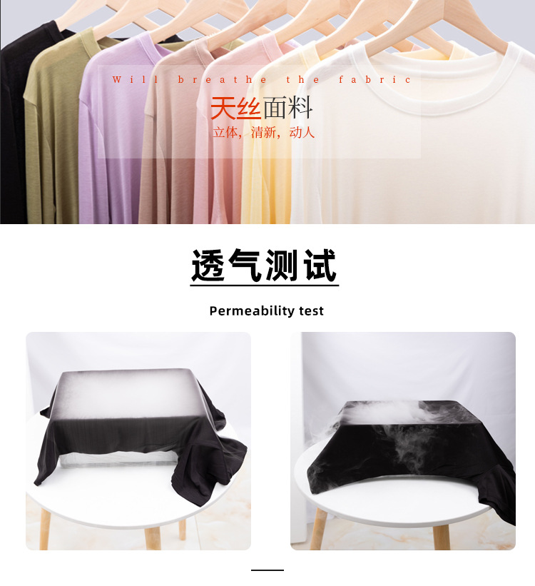 리오셀 텐셀 베이스 셔츠 여성용 라운드 넥 경량 느슨한 한국 스타일 모든 매치 내부 자외선 차단제 긴팔 여성 마스크 의류스토어 가기
