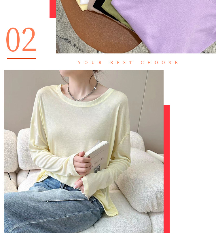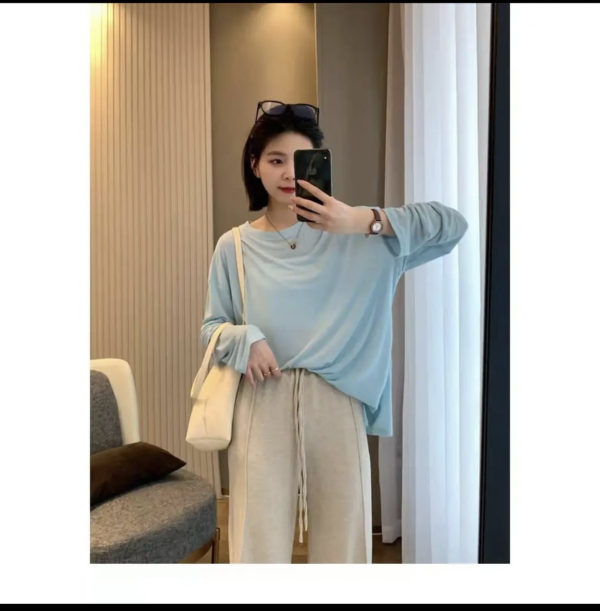 리오셀 텐셀 베이스 셔츠 여성용 라운드 넥 경량 느슨한 한국 스타일 모든 매치 내부 자외선 차단제 긴팔 여성 마스크 의류