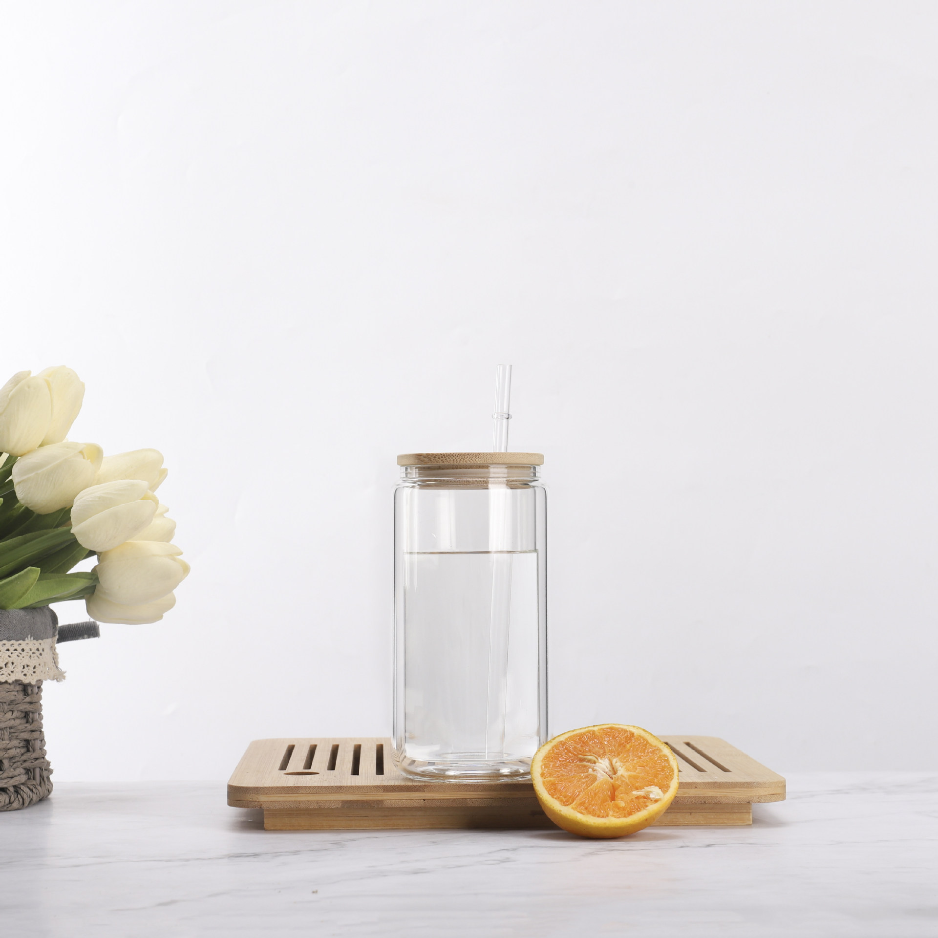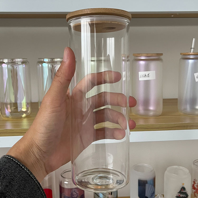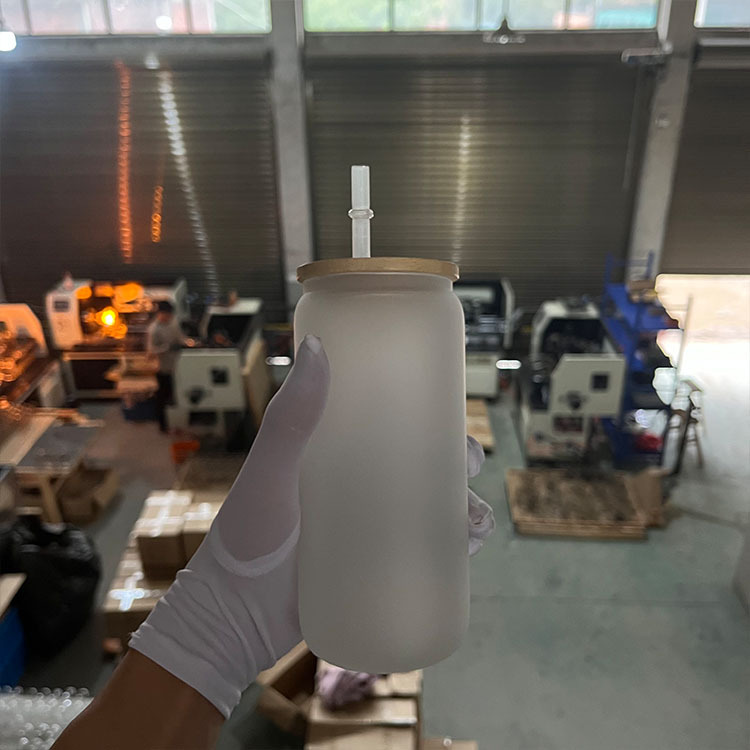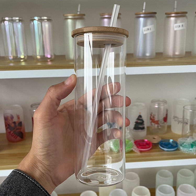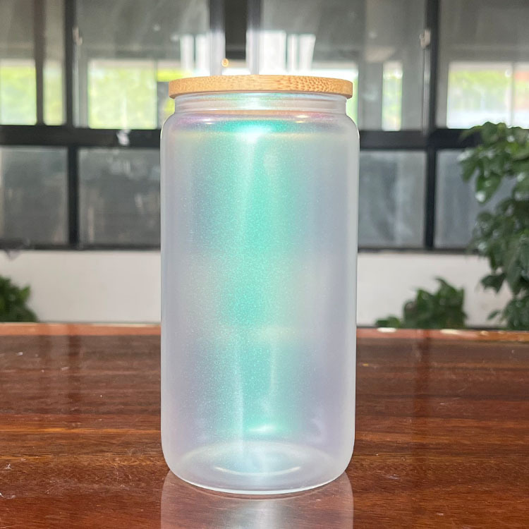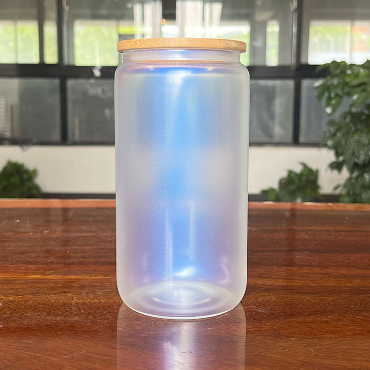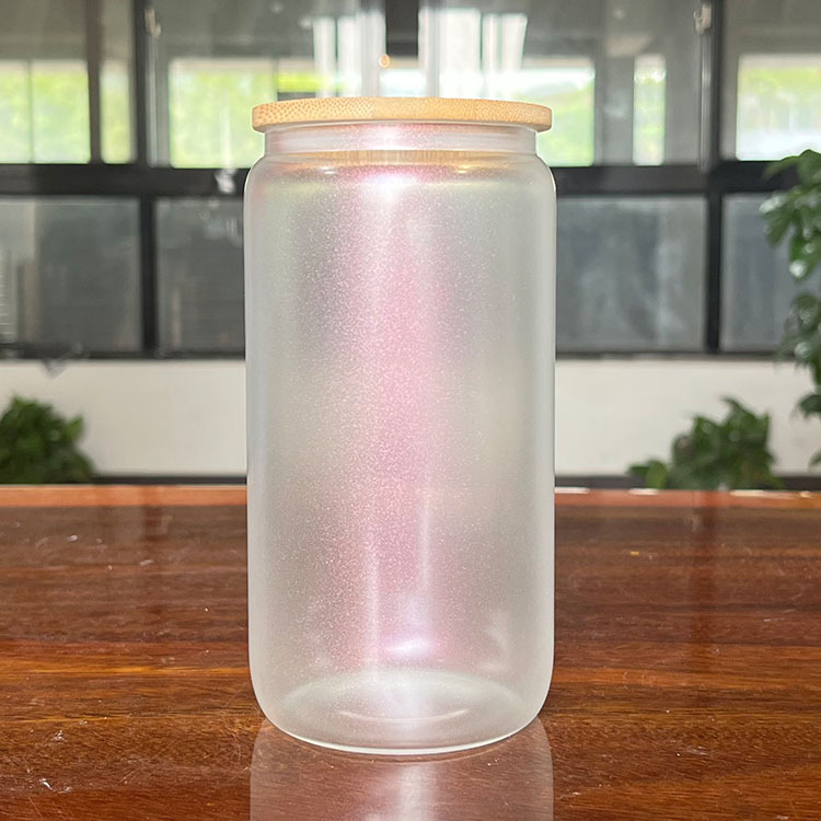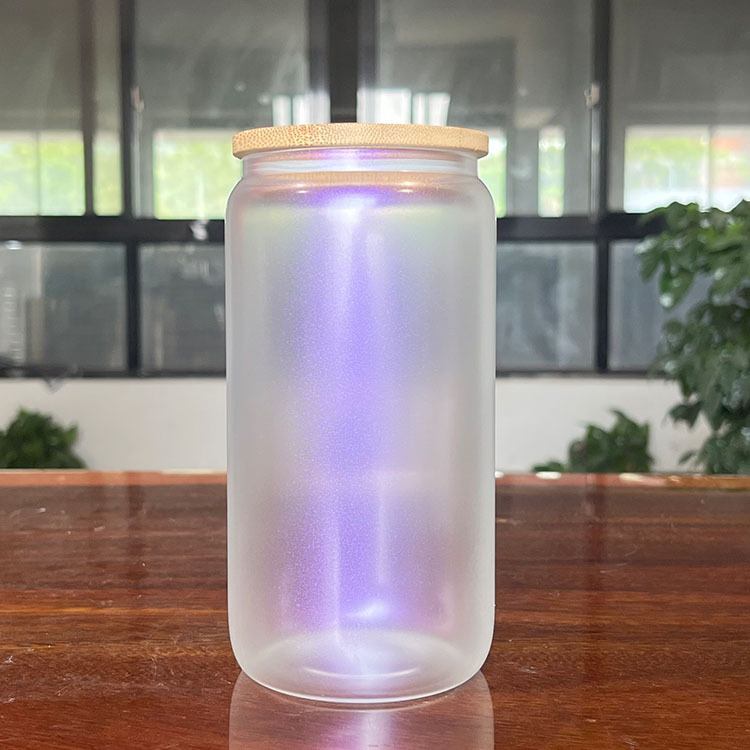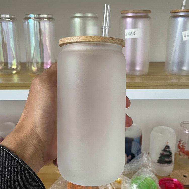 도매 열 승화 특수 유리 그라디언트 젖빛 유리 빨대 컵 메이슨 항아리 냉각 색상 변경 대나무 뚜껑 물 컵
