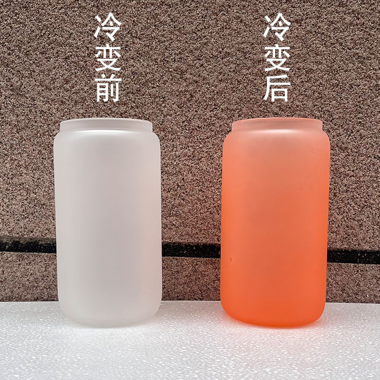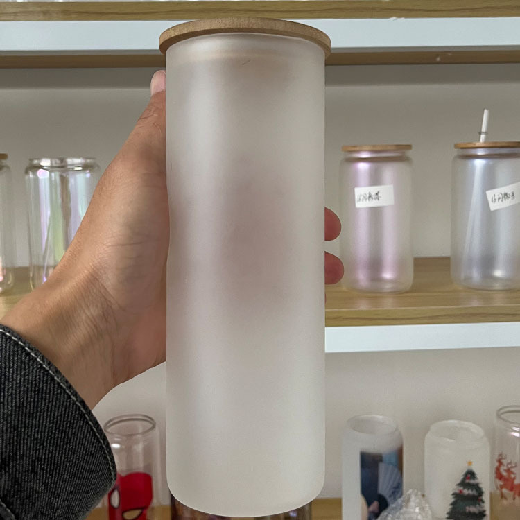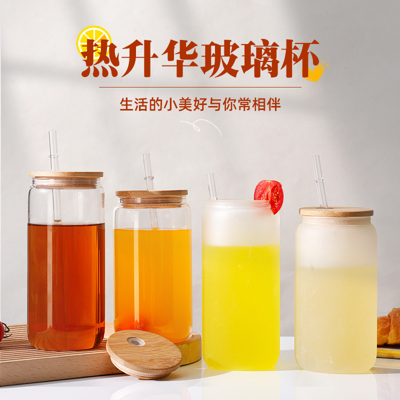 도매 열 승화 특수 유리 그라디언트 젖빛 유리 빨대 컵 메이슨 항아리 냉각 색상 변경 대나무 뚜껑 물 컵스토어 가기