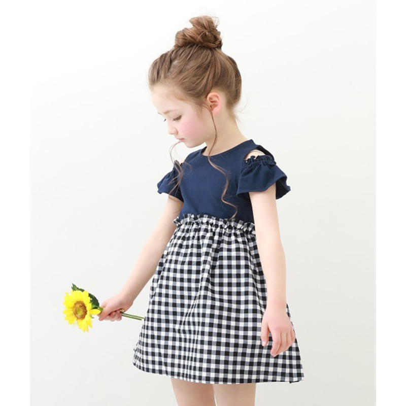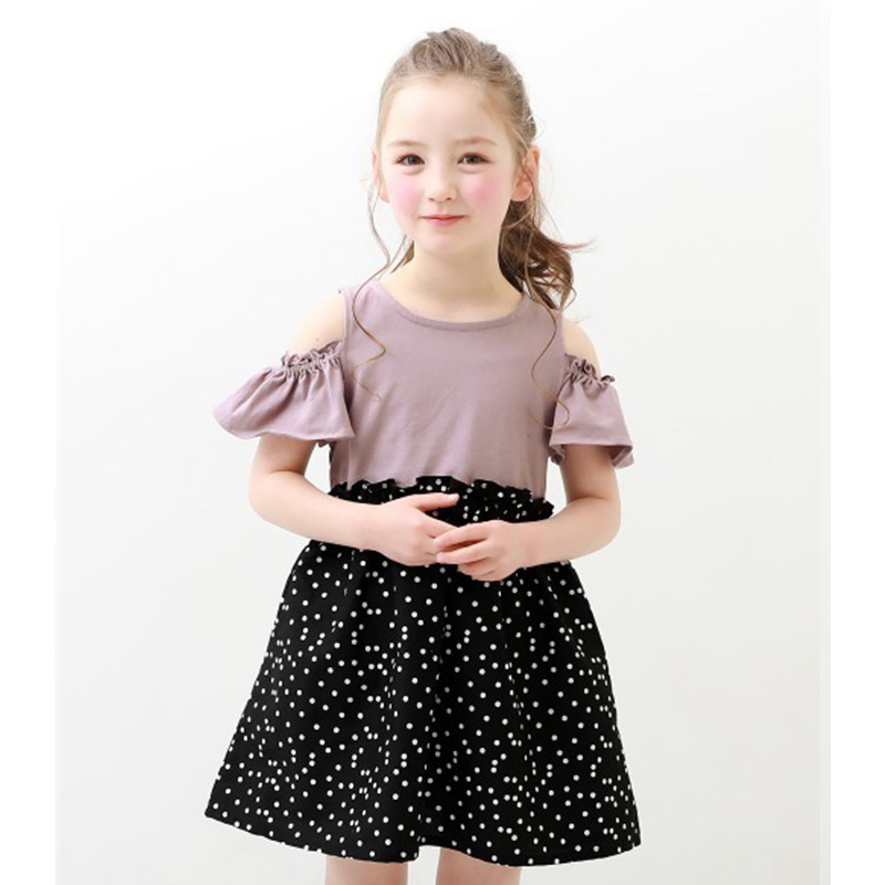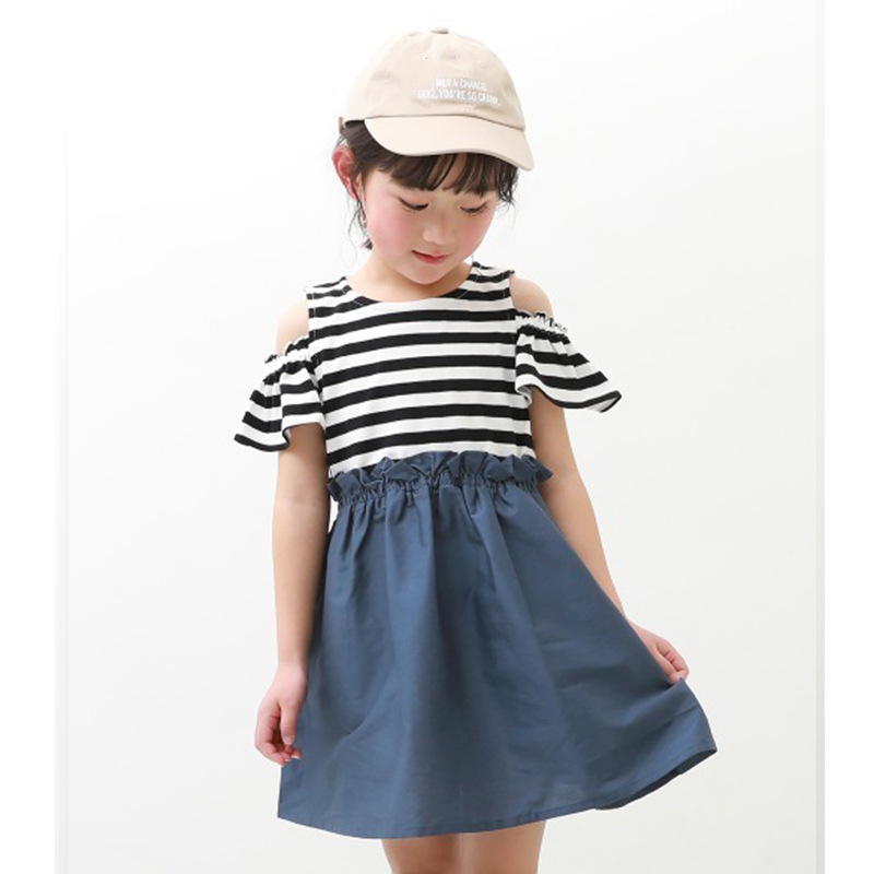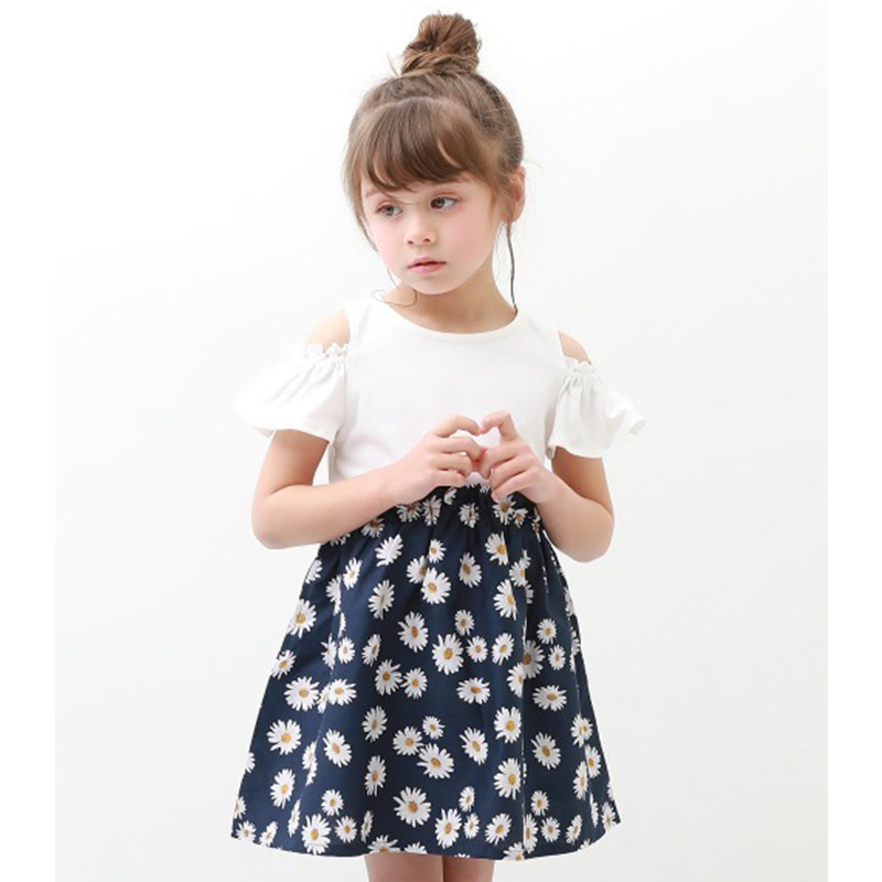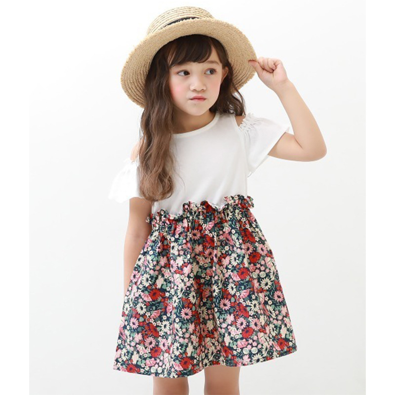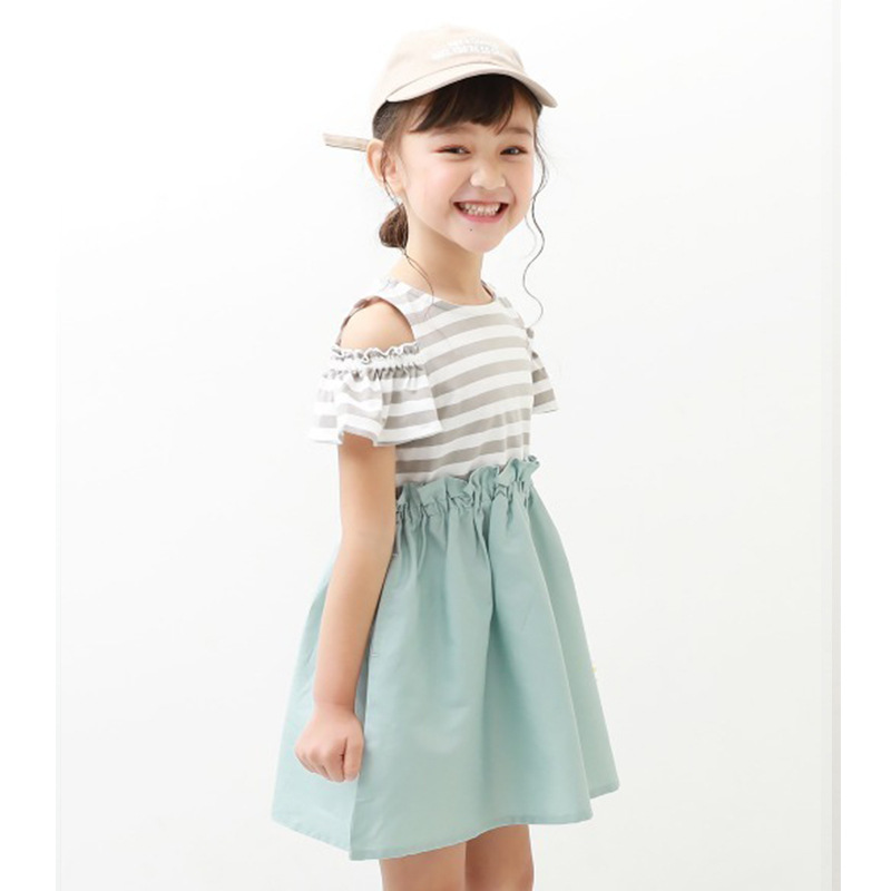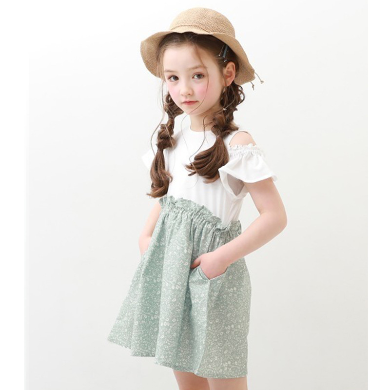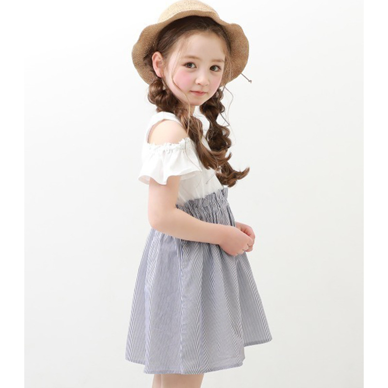 2022 여름 여아 중대형 아동복 일본 스타일 의상 투피스 스타일 오프숄더 원피스 통기성 좋은 가벼운 스커트