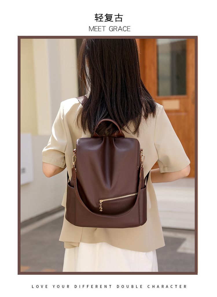 새로운 여성 가방 크로스 보더 PU 부드러운 가죽 질감 배낭 대용량 간단한 통근 가방 캐주얼 어깨 여행 배낭