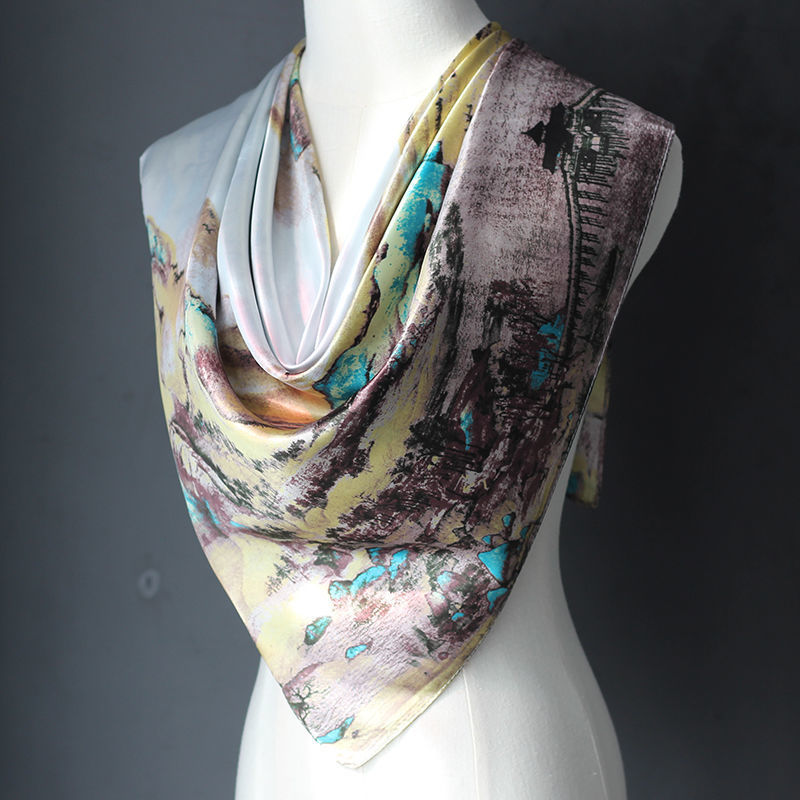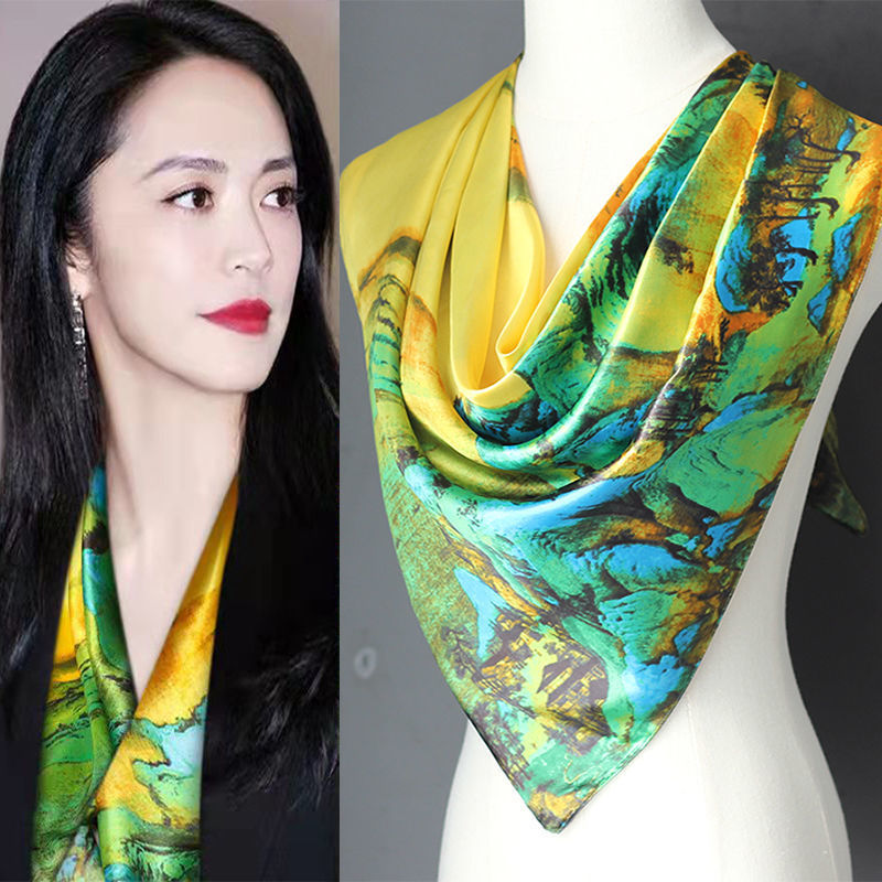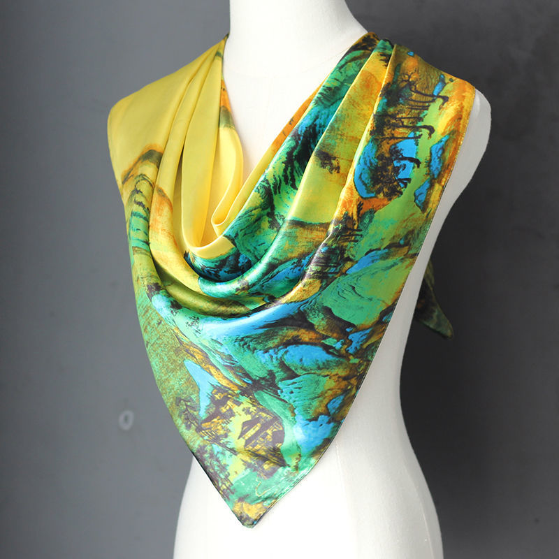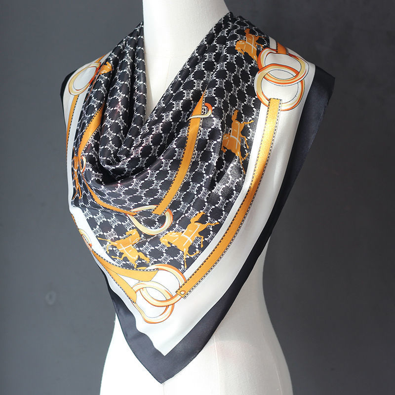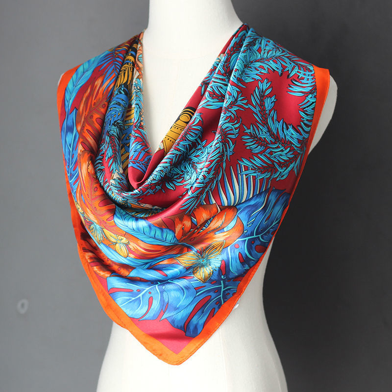 다양한 민족 스타일 스퀘어 실크 스카프 새틴 90CM 대형 스퀘어 스카프 여성용 스카프 힙 선 스크린 스카프 듀얼 사용 얇은 목도리
