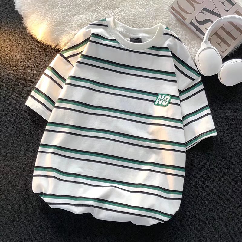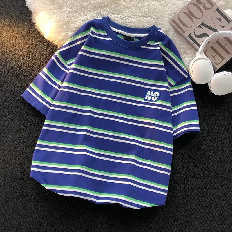 스트라이프 티셔츠 남성 여름 2022 새로운 디자인 감각 틈새 느슨한 복고풍 홍콩 스타일, 트렌디 한 학생 짧은 소매 탑스토어 가기