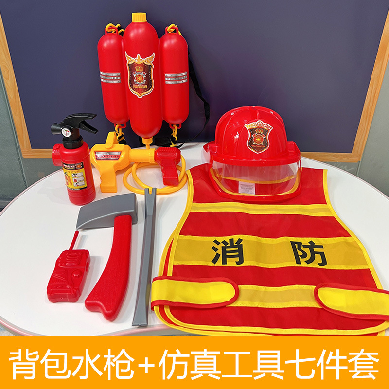 어린이 샘 장난감 소방관 배낭 물총 풀 아웃 물 스프레이 시뮬레이션 소화기 비치 장난감 남성용
