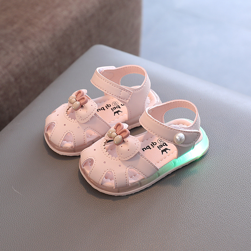 새 소녀의 라이트 온 샌들 여름 0-1-3 세 2 유아 닫힌 발가락 샌들 아기 소녀 비치 프린세스 가죽 신발