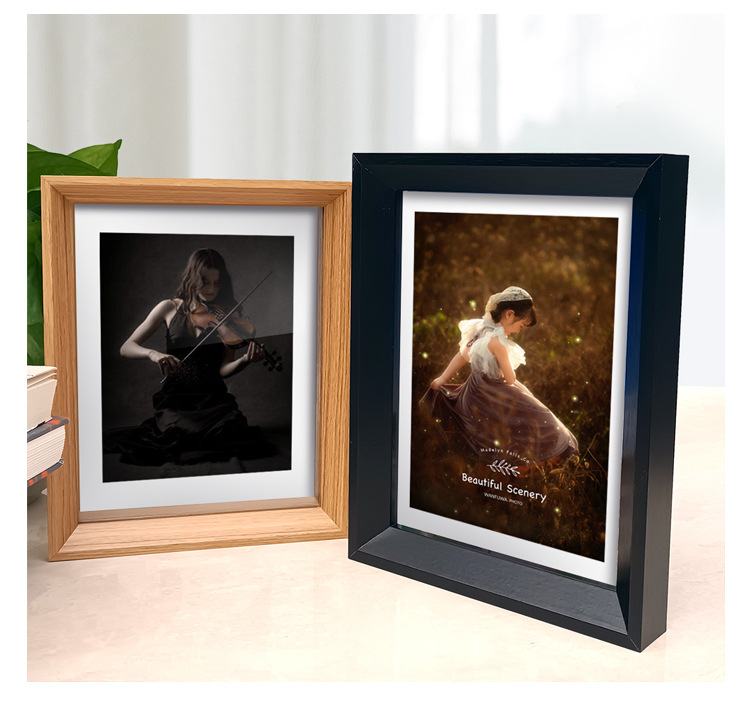 도매 창의적인 나무 액자 테이블 장식 도매 무타공 양면 투명 유리 DIY 나무 레트로 액자