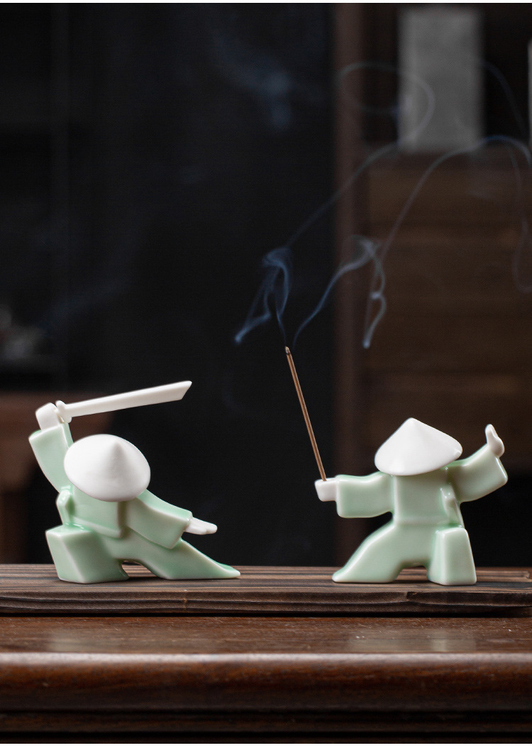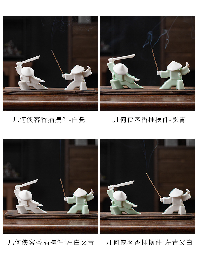 크리 에이 티브 사무라이 현대 세라믹 장식품 아로마 테라피 용광로 기사 남자 차 애완 동물 가정 실내 백단향 삽입기 향 냄비