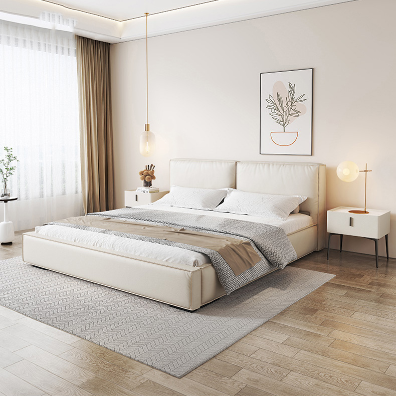이탈리아 스타일 미니멀리스트 가죽 침대 마스터 침실 빛 럭셔리 큰 침대 현대 간단한 마스터 침실 소프트 백 웨딩 침대 콩 두부 블록 더블 침대스토어 가기
