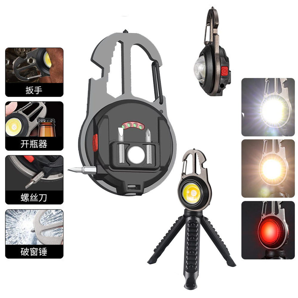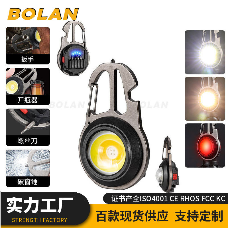 크로스 보더 USB 야외 다기능 키체인 라이트 휴대용 미니 COB 작업등 비상 손전등 캠핑 등