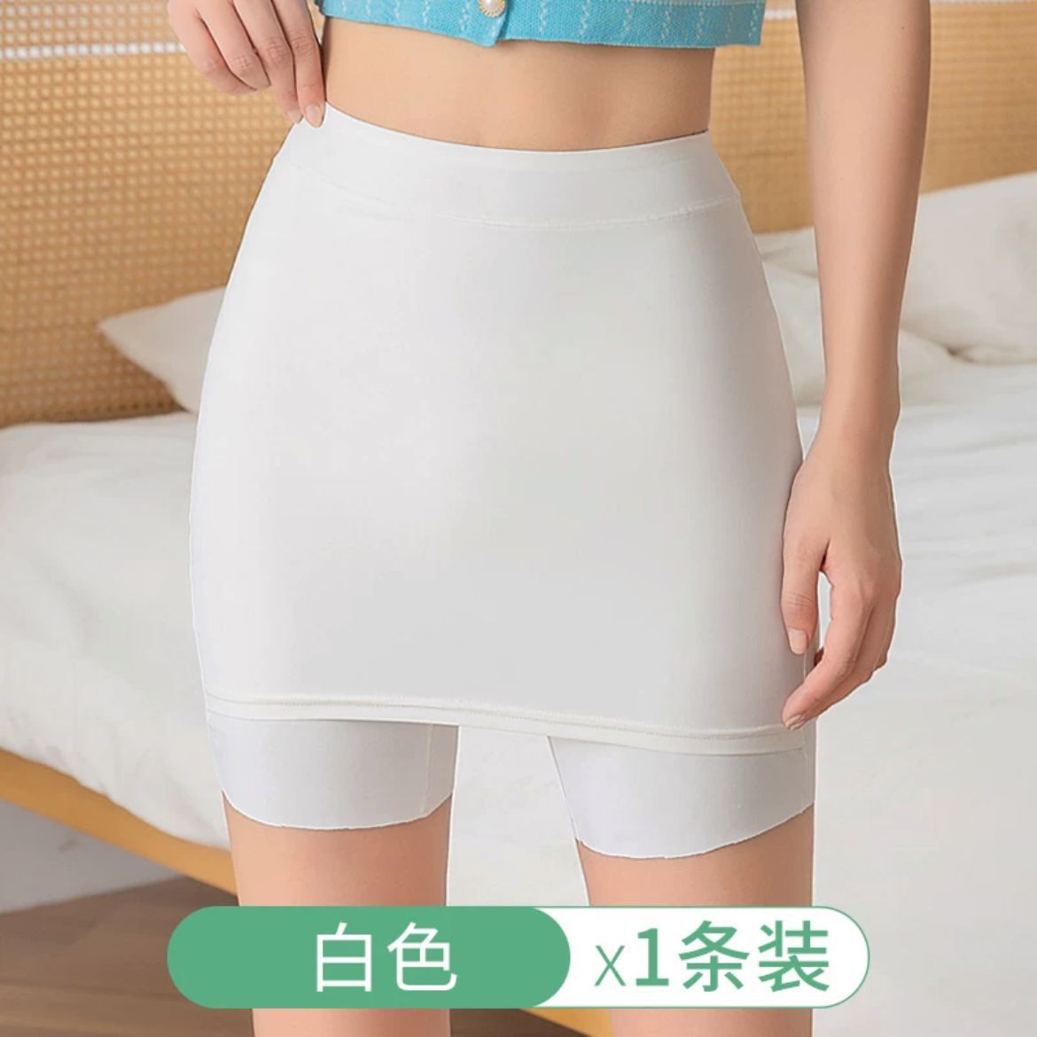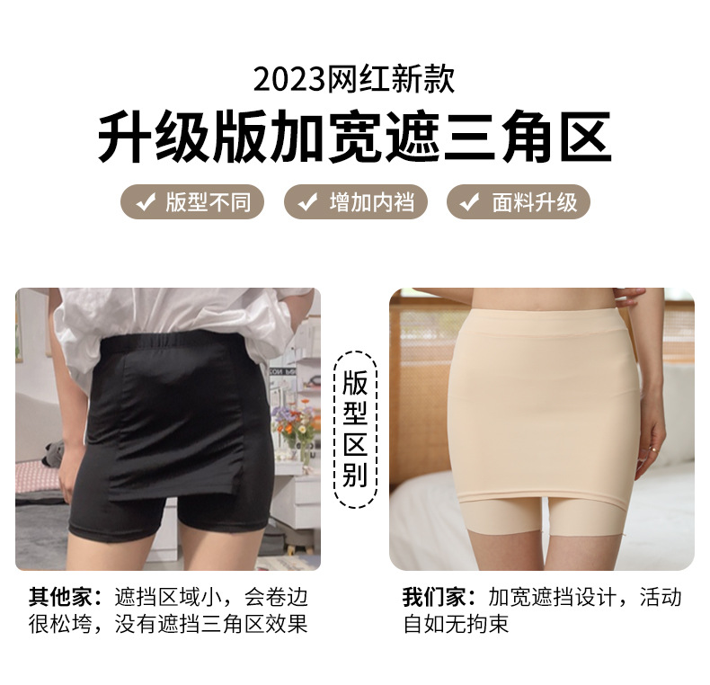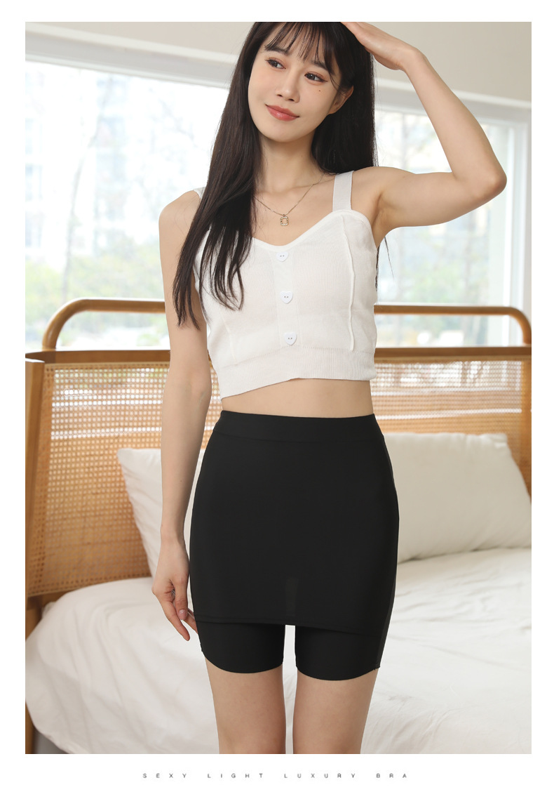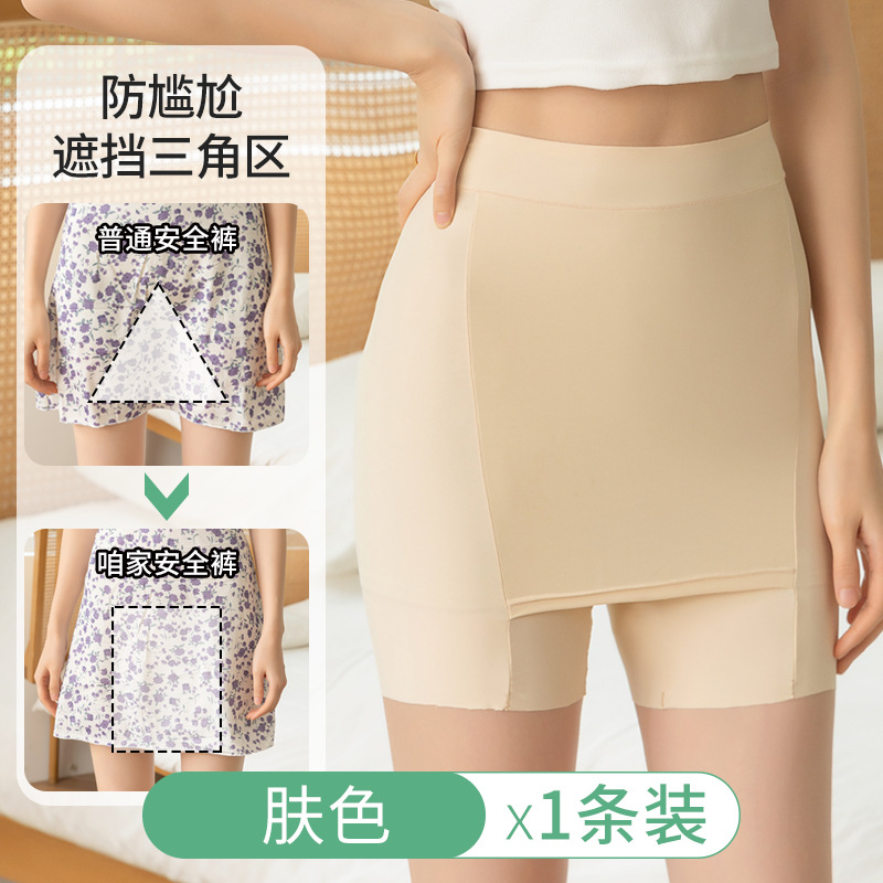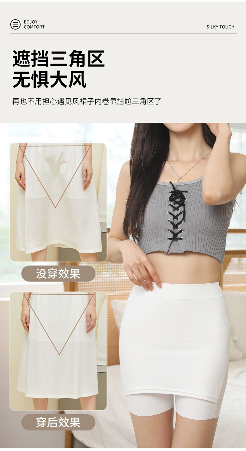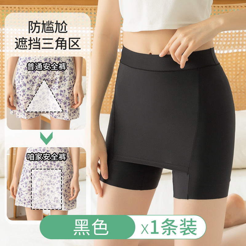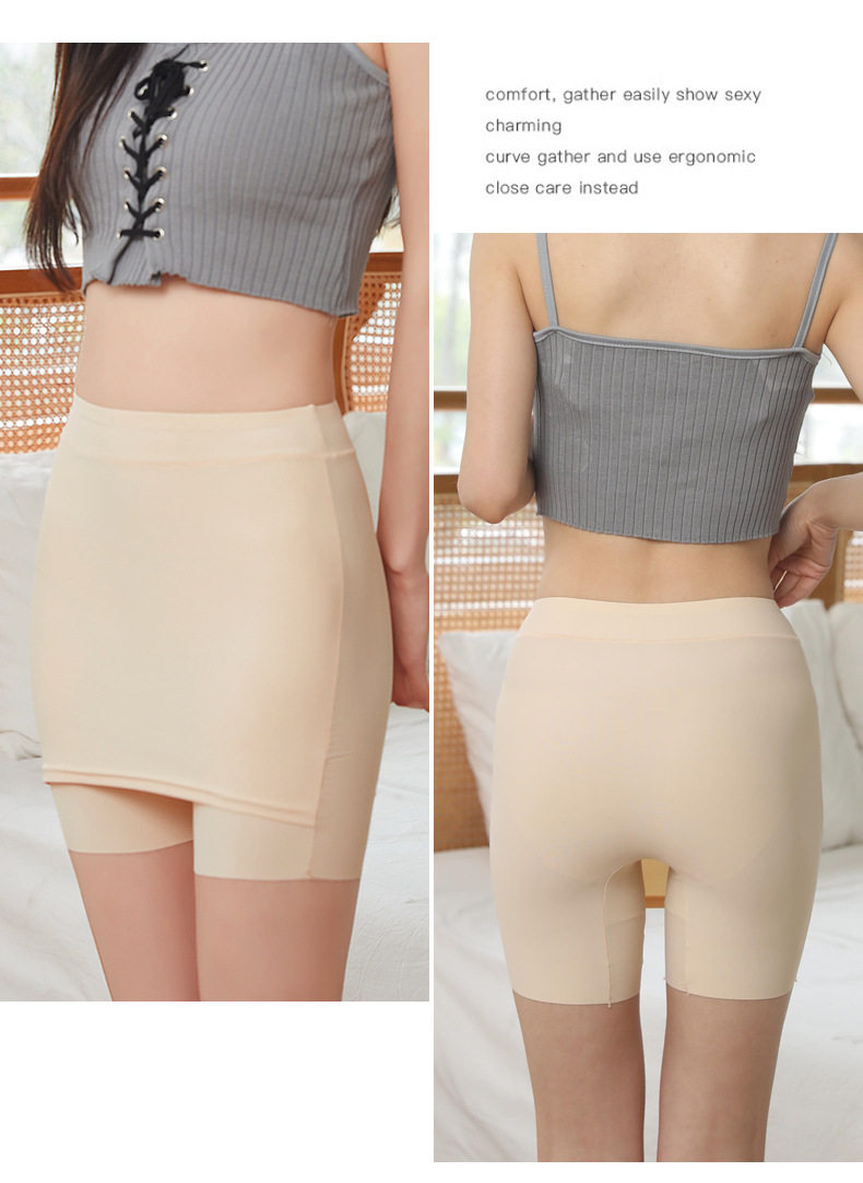 아이스 실크 무봉제 안전팬츠 여성용 중간 허리 높이 노출방지 레깅스 면 안감 힙커버 스커트 롤링되지 않는 밑단 공장 직배송