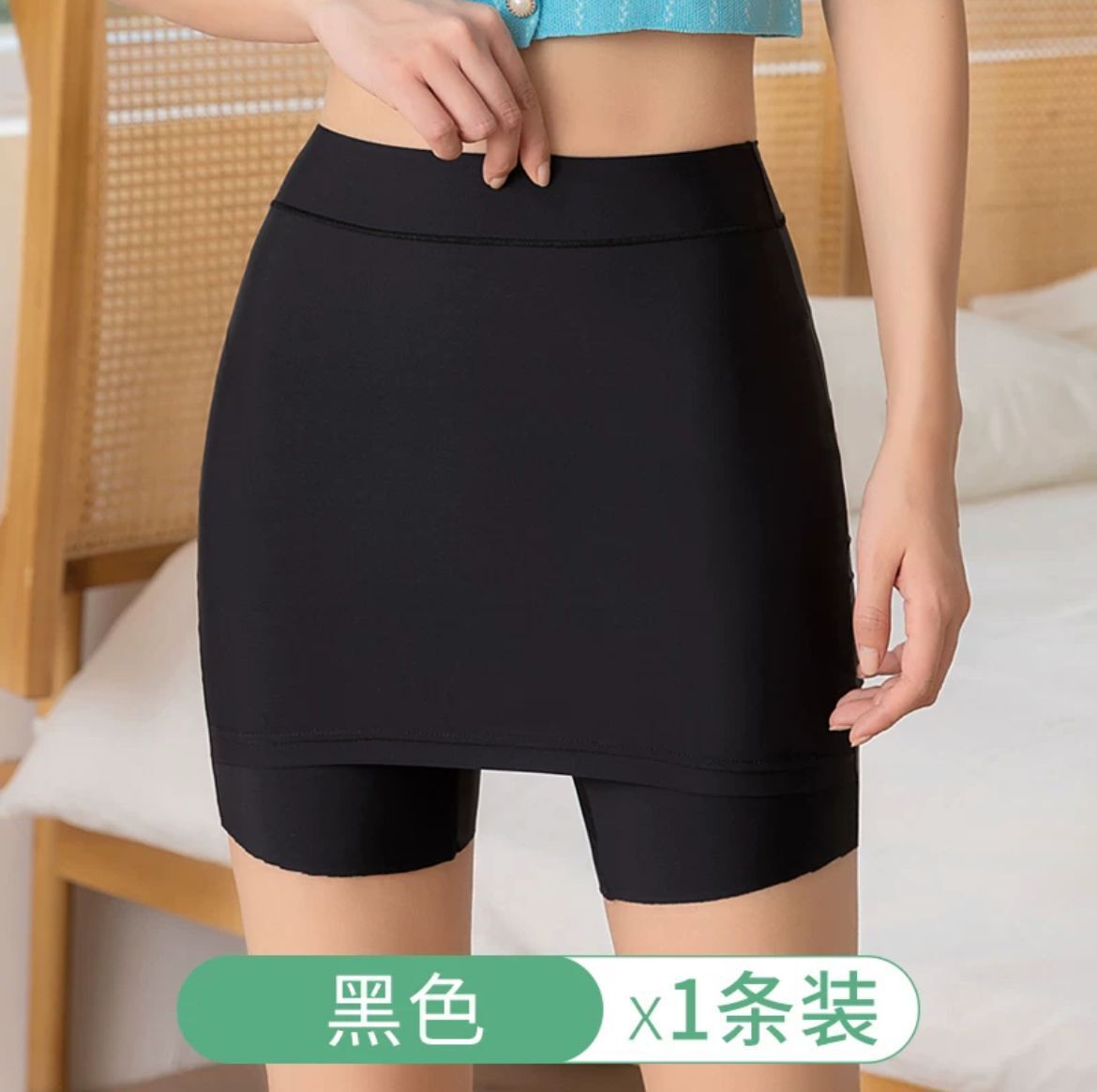아이스 실크 무봉제 안전팬츠 여성용 중간 허리 높이 노출방지 레깅스 면 안감 힙커버 스커트 롤링되지 않는 밑단 공장 직배송스토어 가기