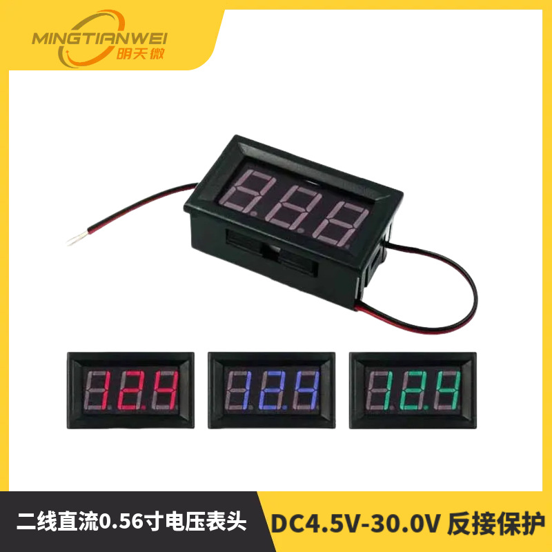 2 선 DC 전압계 헤드 0.56 인치 LED 디지털 전압계 DC4.5V-30.0V 역방향 연결 보호