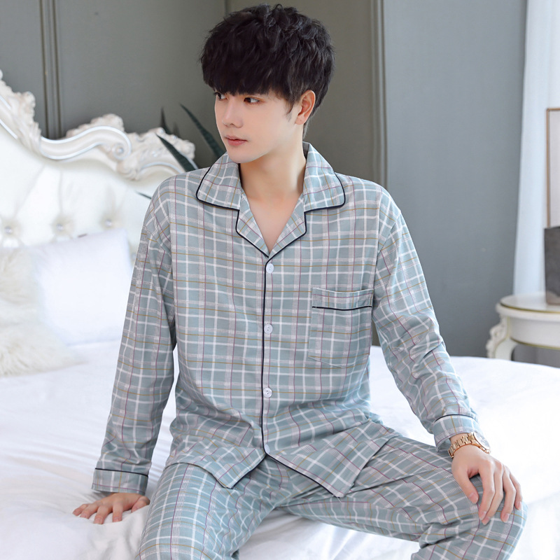 봄과 가을 잠옷 긴팔 면 젊은 중년 및 노인 아빠 플러스 사이즈 남성용 면 가정복 세트스토어 가기