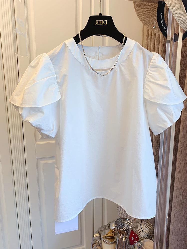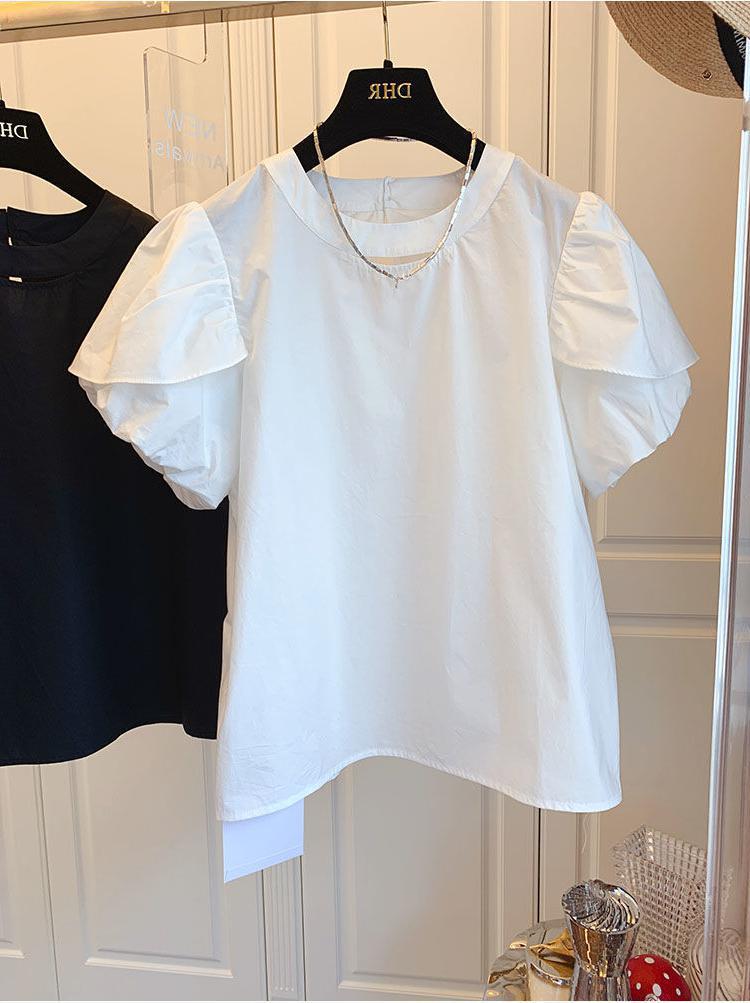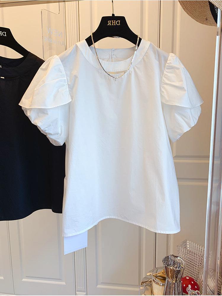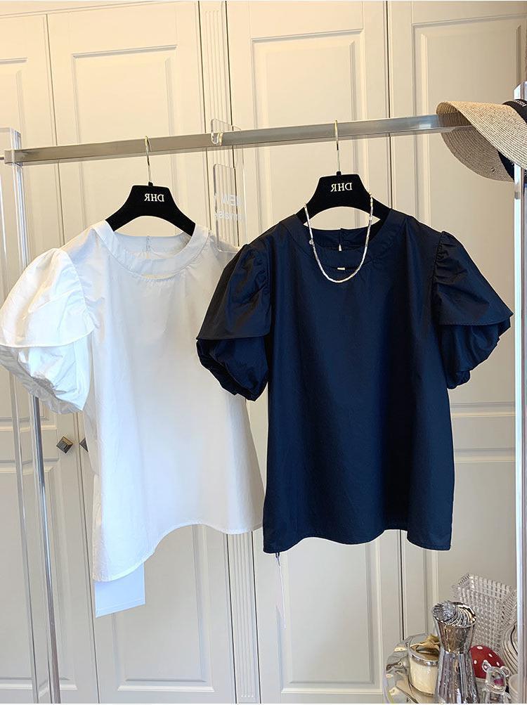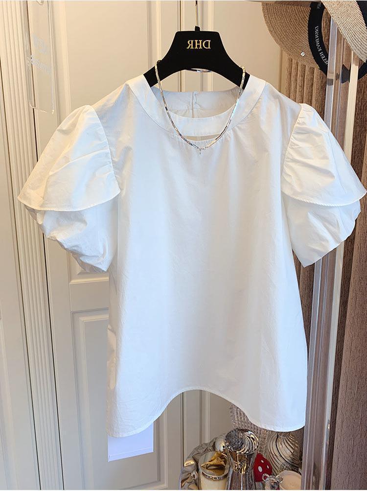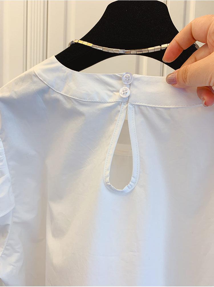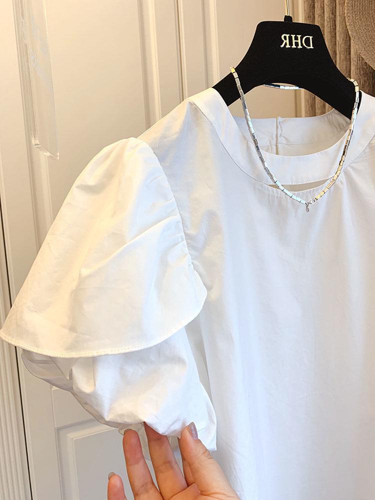 프렌치 스타일 소녀 라운드넥 빈티지 꽃잎 소매 반팔 셔츠 여성용 소금 스타일 신상 루즈핏 패셔너블 셔츠