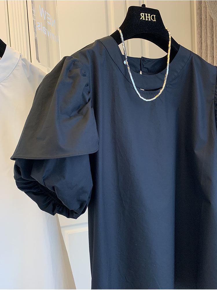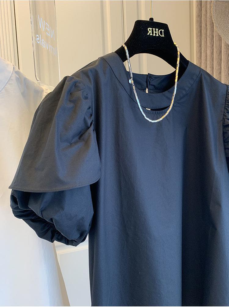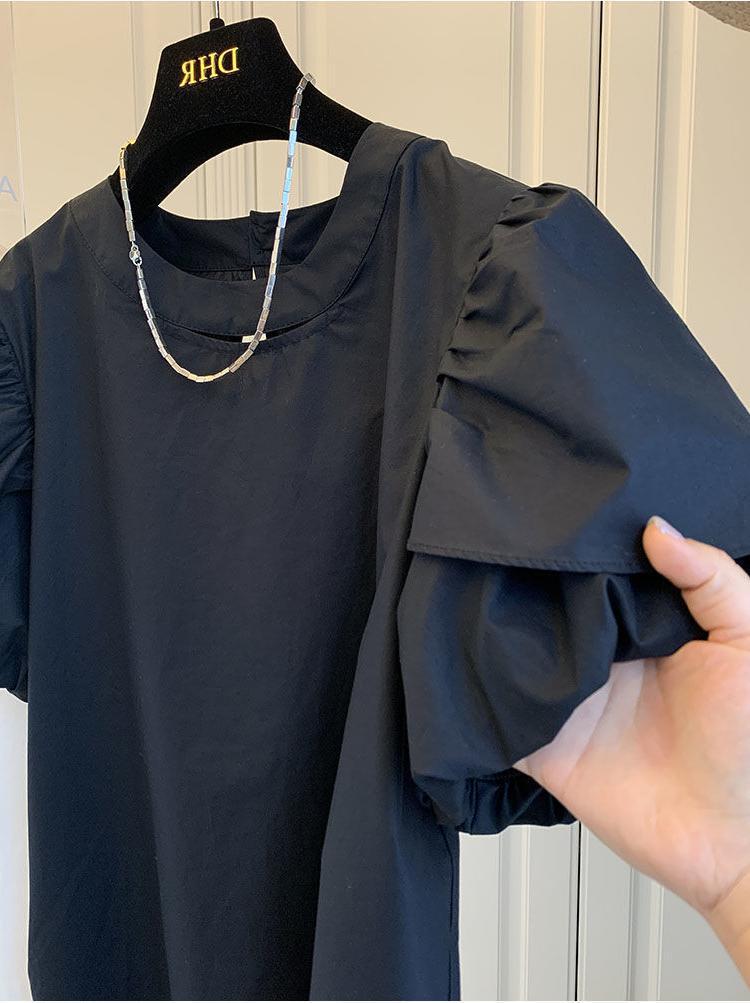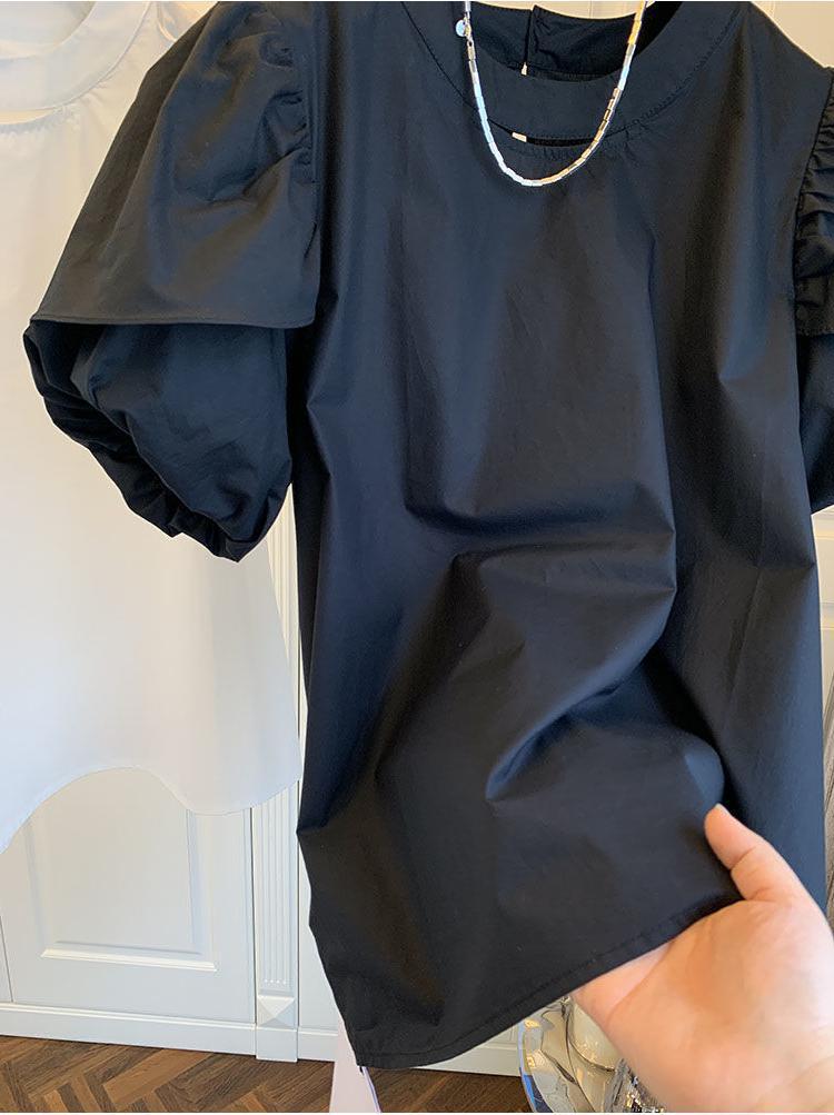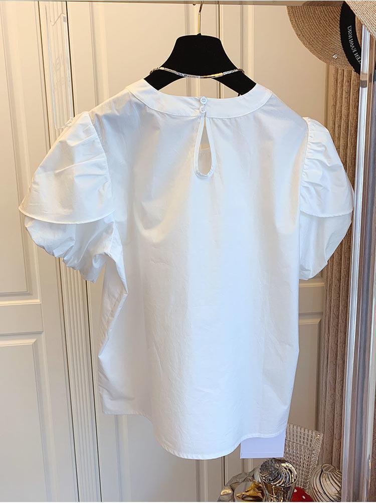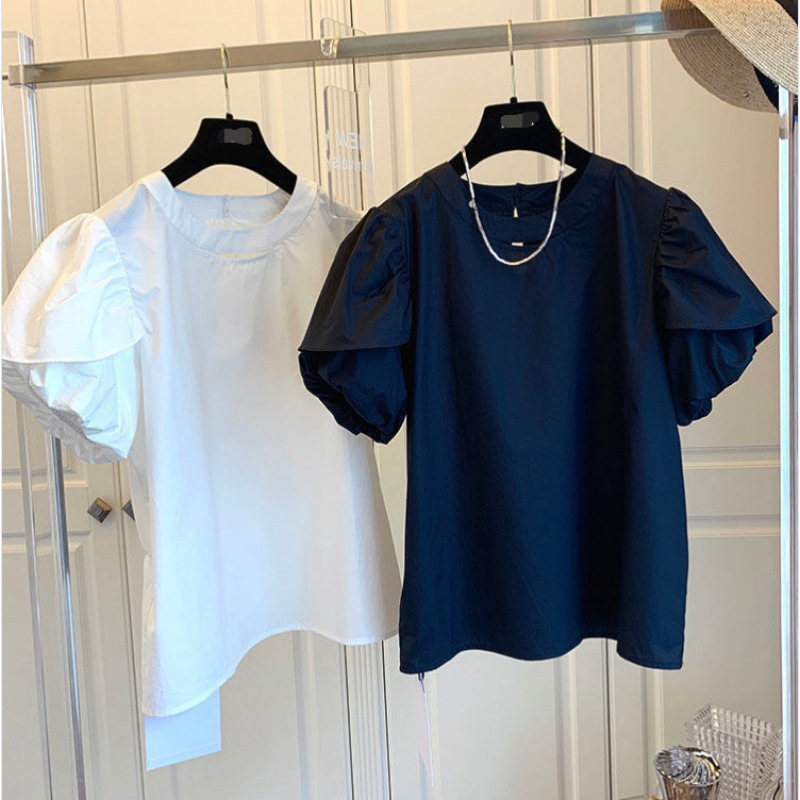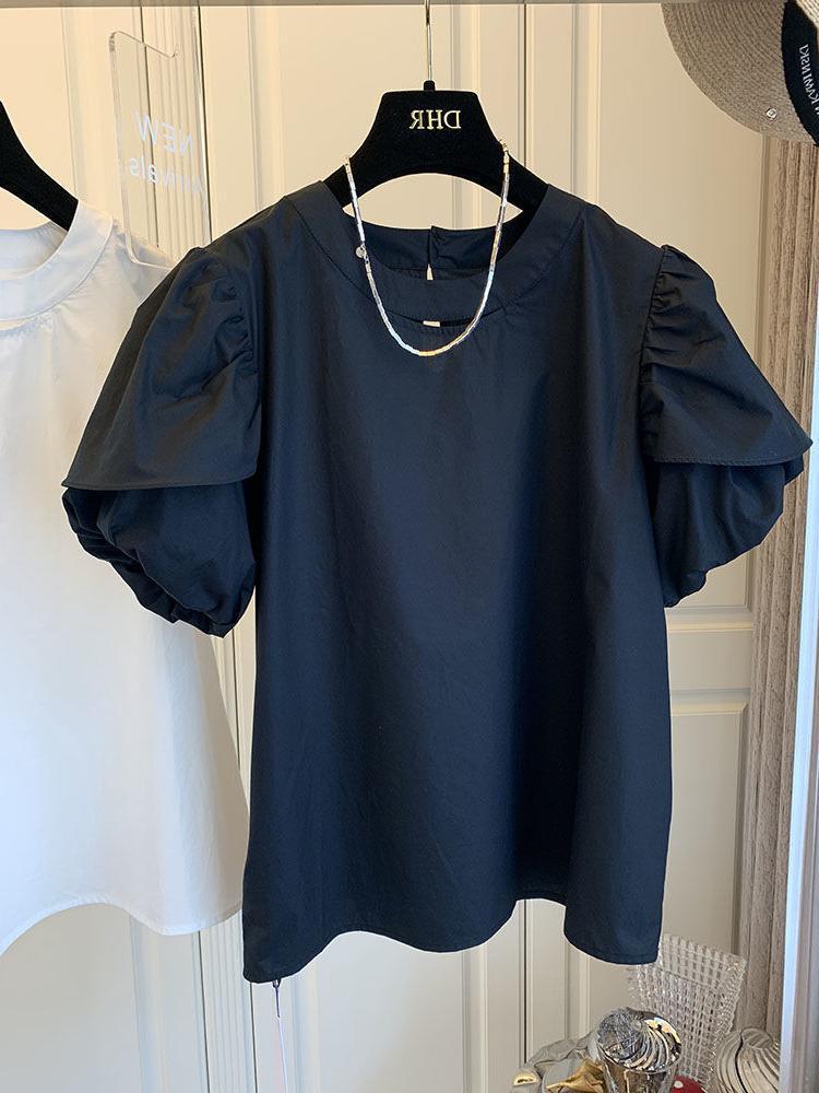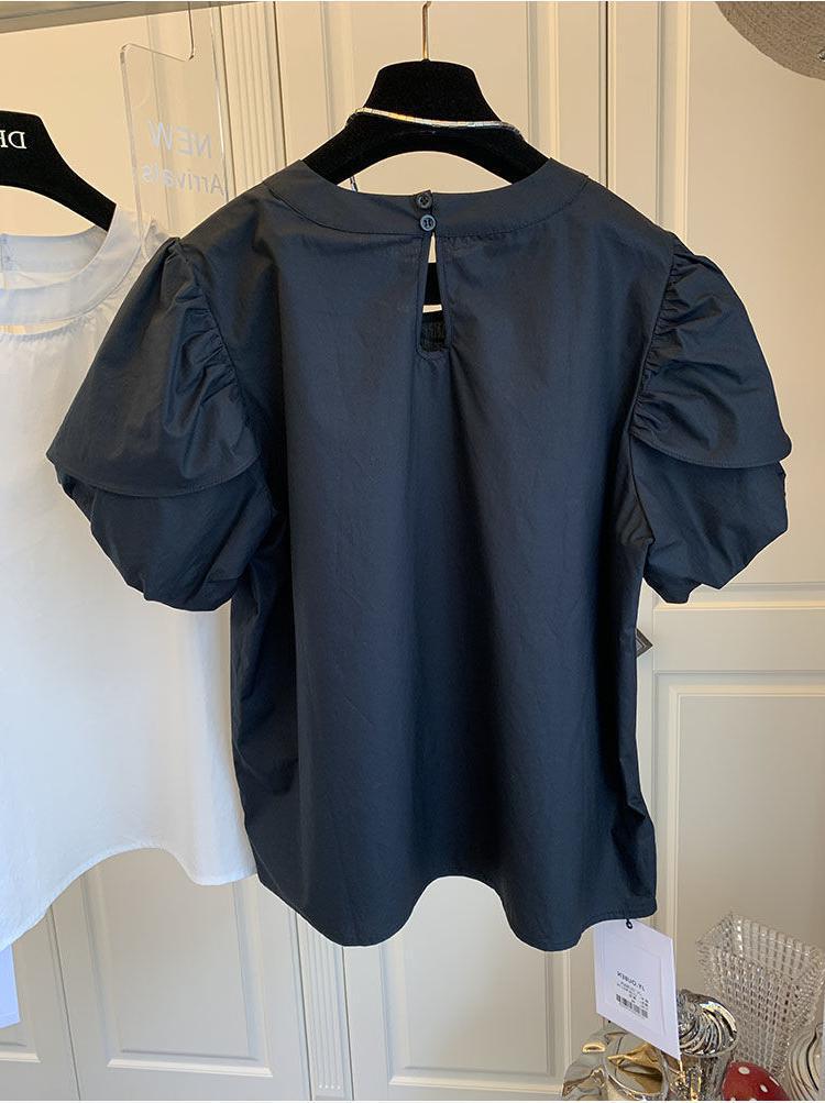 프렌치 스타일 소녀 라운드넥 빈티지 꽃잎 소매 반팔 셔츠 여성용 소금 스타일 신상 루즈핏 패셔너블 셔츠