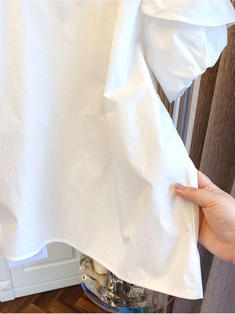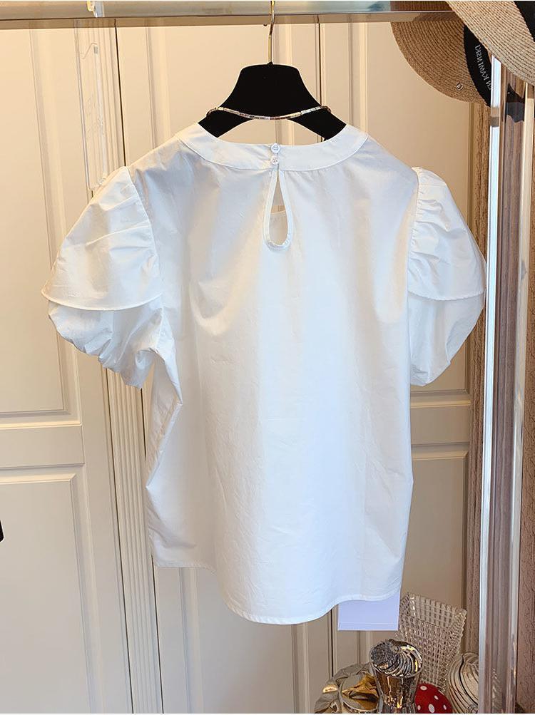 프렌치 스타일 소녀 라운드넥 빈티지 꽃잎 소매 반팔 셔츠 여성용 소금 스타일 신상 루즈핏 패셔너블 셔츠스토어 가기