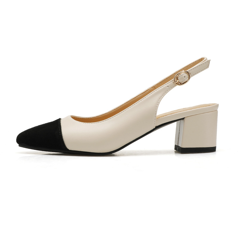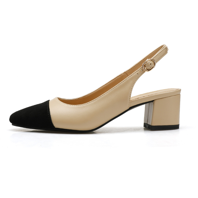 중간 높이 굽의 앞이 막힌 샌들, 여성용 라운드 토 두꺼운 굽 워크 슈즈, 소가죽 캐주얼 슈즈, 트렌디한 여성용 중간 굽 배색 슈즈