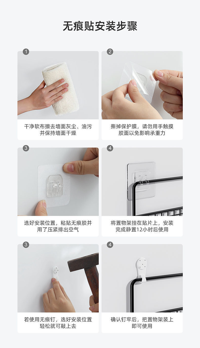 • 흰색 좁은 중간 + 후크가 있는 좁은 중간 + 흔적 없는 스티커 6개