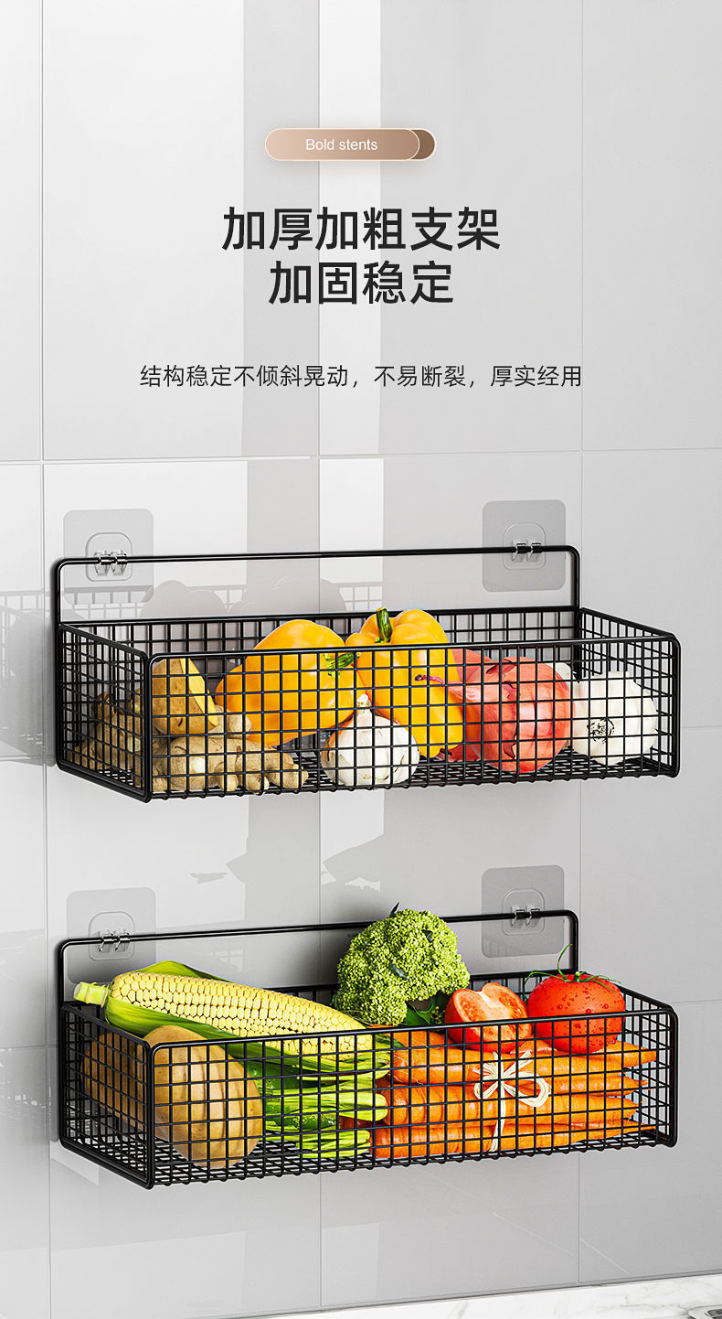 펀치 프리 주방 수납 랙 주방 마늘 생강 수납 벽 수납 랙 접착 걸이 바구니 기숙사 보관 유물스토어 가기