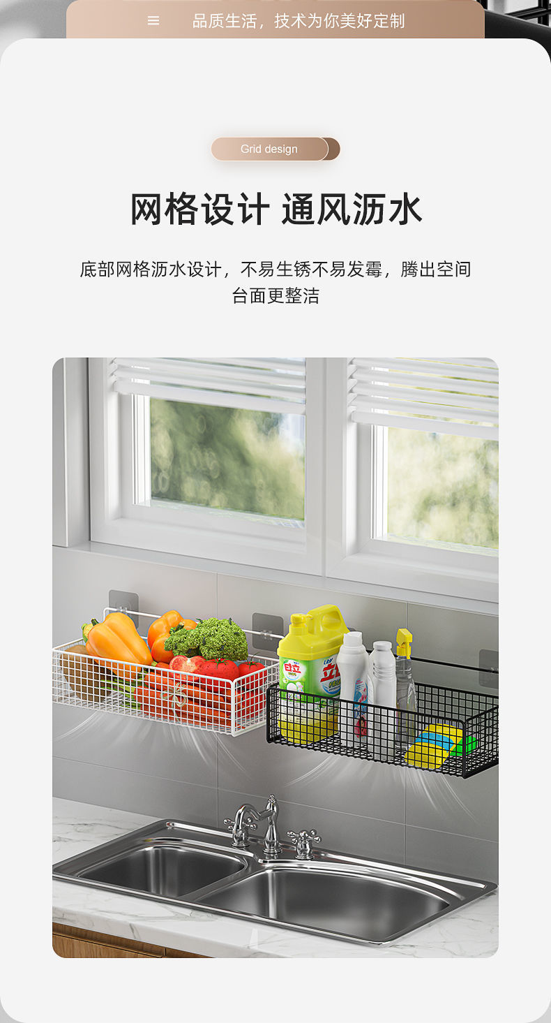 펀치 프리 주방 수납 랙 주방 마늘 생강 수납 벽 수납 랙 접착 걸이 바구니 기숙사 보관 유물