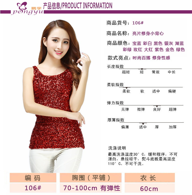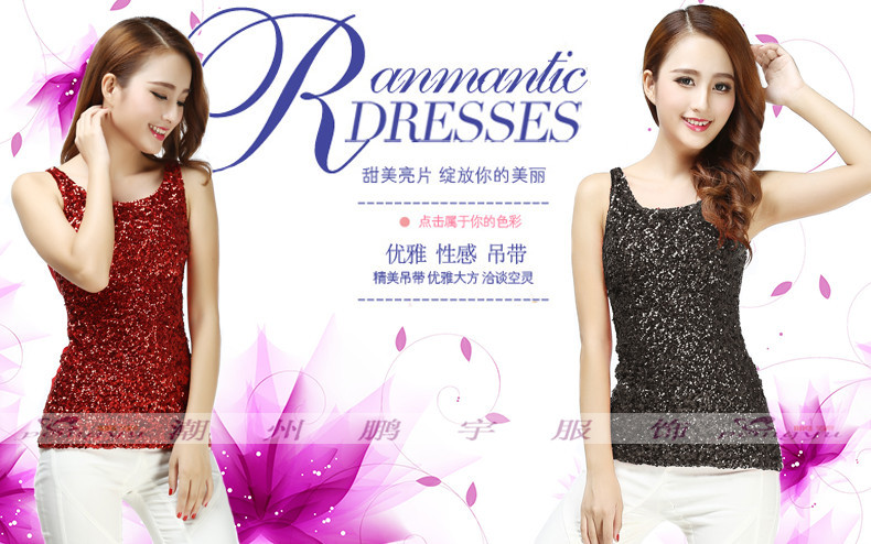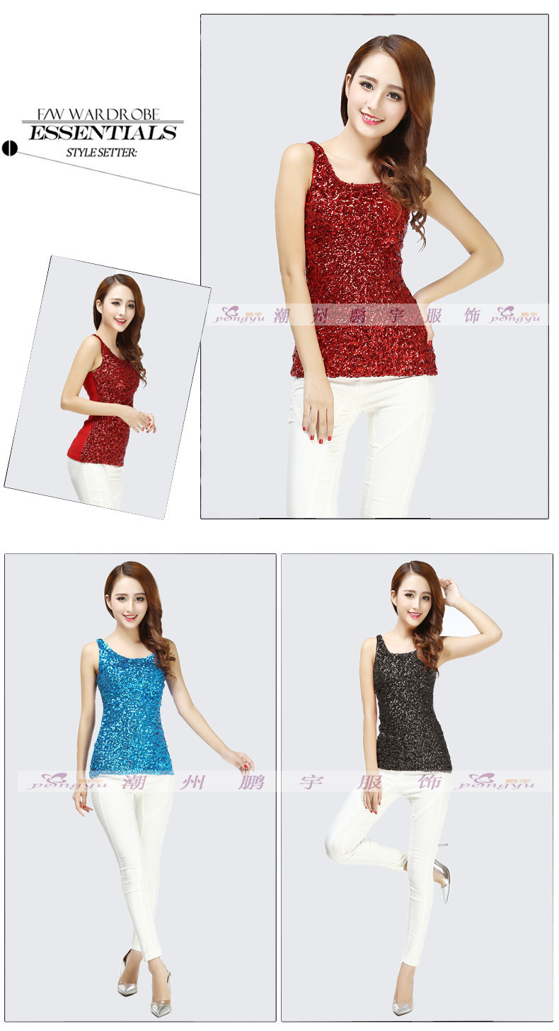 새로운 한국식 슬림핏 얇은 스팽글 조끼 여성용 패셔너블한 모든 매치 파인 스팽글 슬림핏 베이스 셔츠스토어 가기