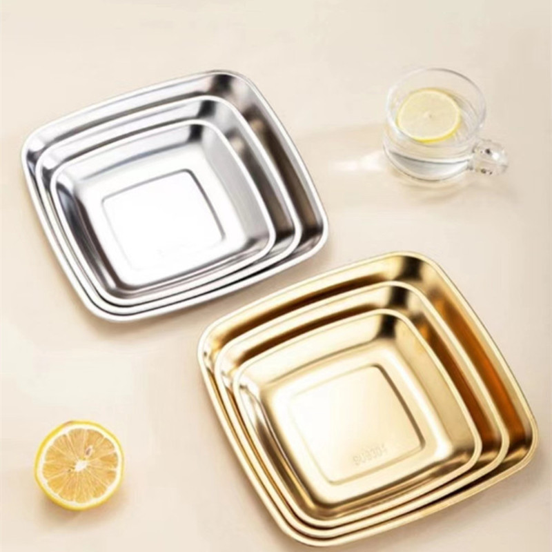304 스낵 플레이트 스테인레스 스틸 스퀘어 플레이트 한국식 디너 플레이트 금도금 소스 플레이트 얕은 플레이트 딤섬 스퀘어 케이크 플레이트
