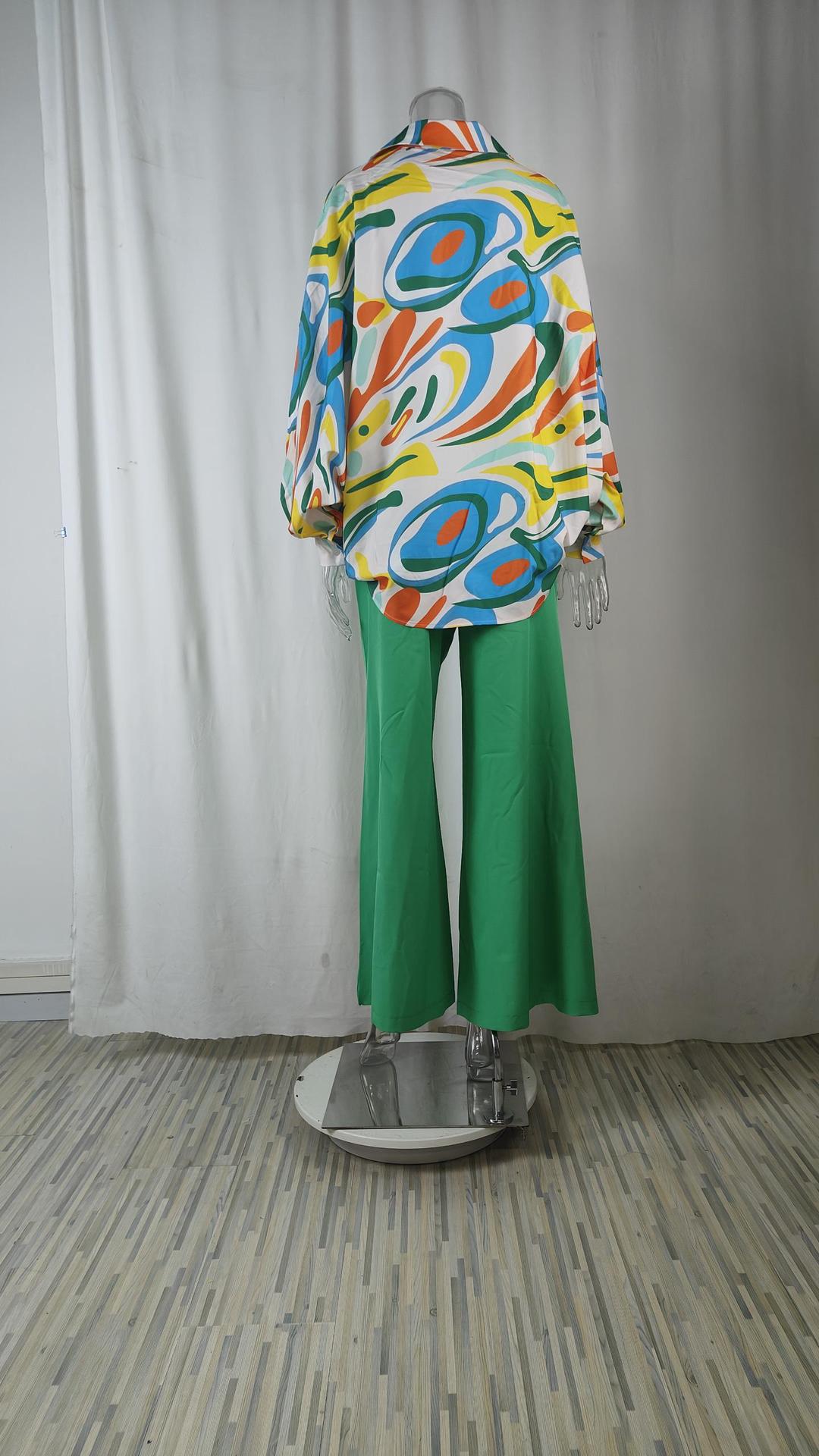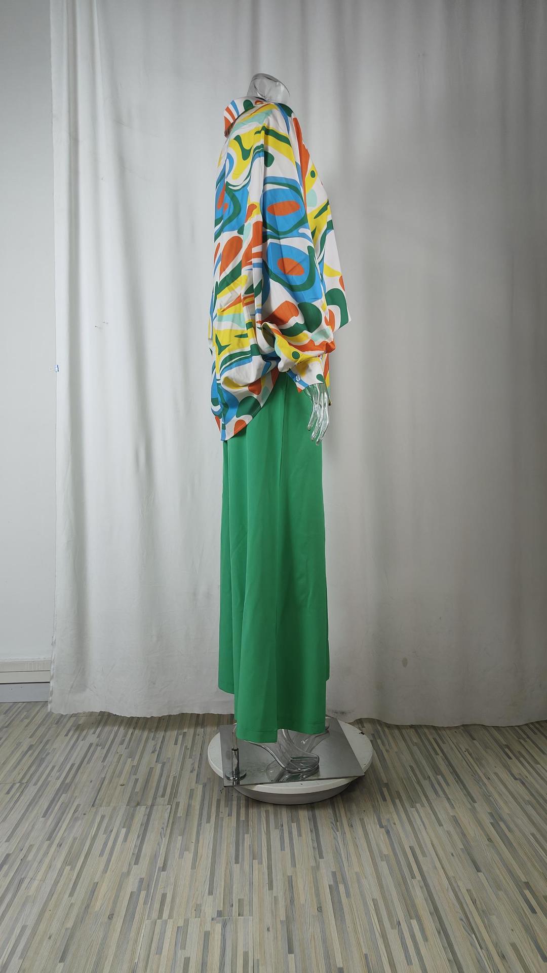 2026 봄 신상품, 유럽 및 미국 해외 무역 여성복, 캐주얼 출퇴근용 박쥐소매 배색 프린트 패션 세트