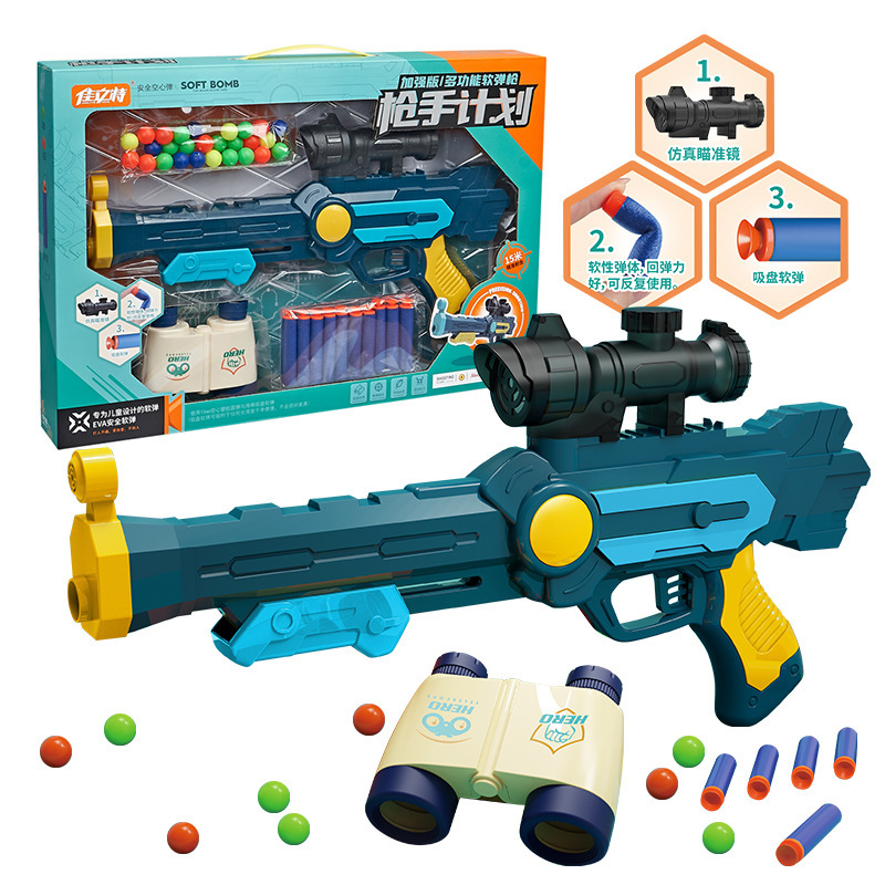 어린이 소프트 총알 총 장난감 수동 로딩 어린이와 소년 촬영 장난감 총 발사 공 시뮬레이션 망원경 세트