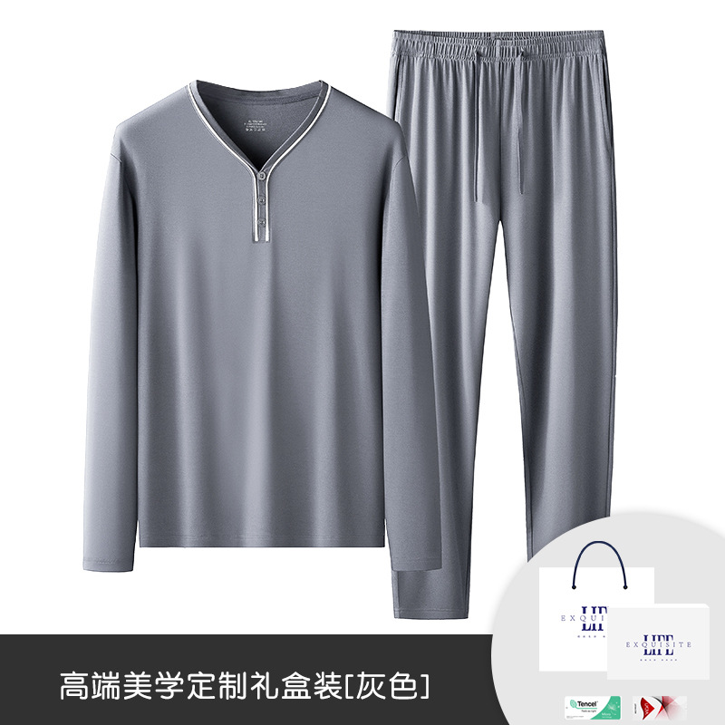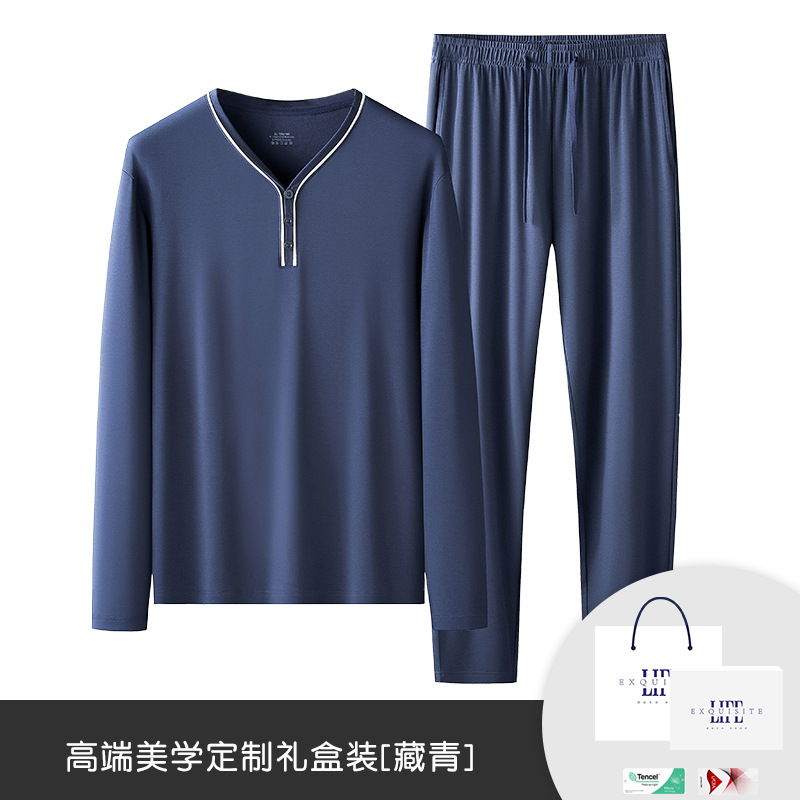 80 양면 모달 봄과 가을 여름 남자 잠옷 남자 세트 남자 긴 소매 소년 가정 옷 도매스토어 가기