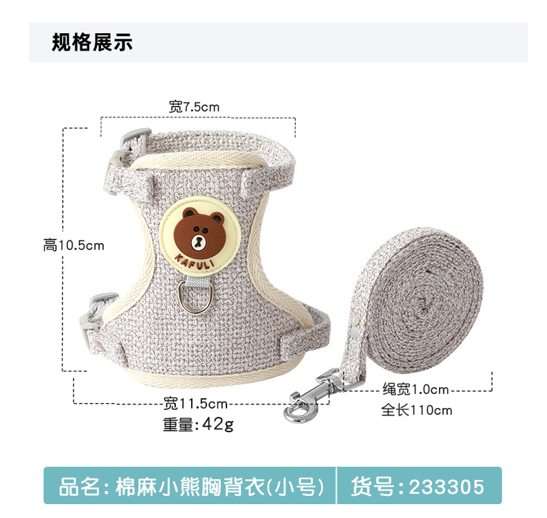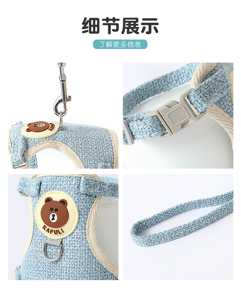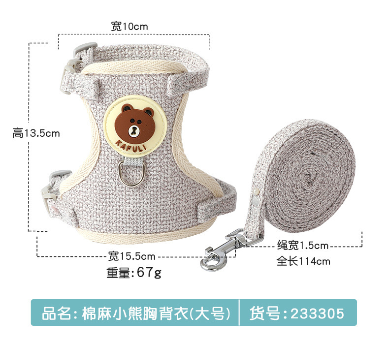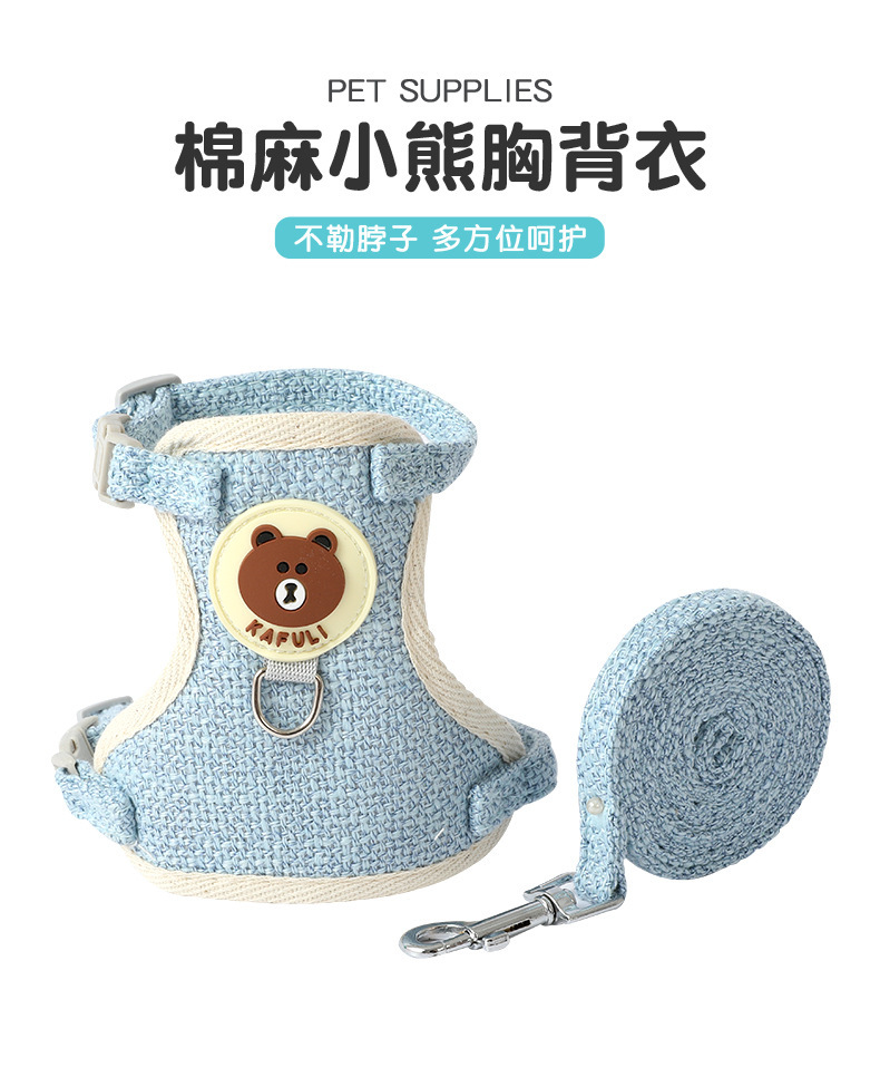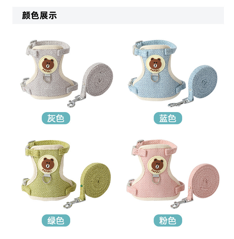 새로운 면화와 린넨 곰 가슴 뒤 의류 중소 개 고양이 가슴 뒤 의류 견인 로프 개 산책 로프 제조 업체 재고 도매