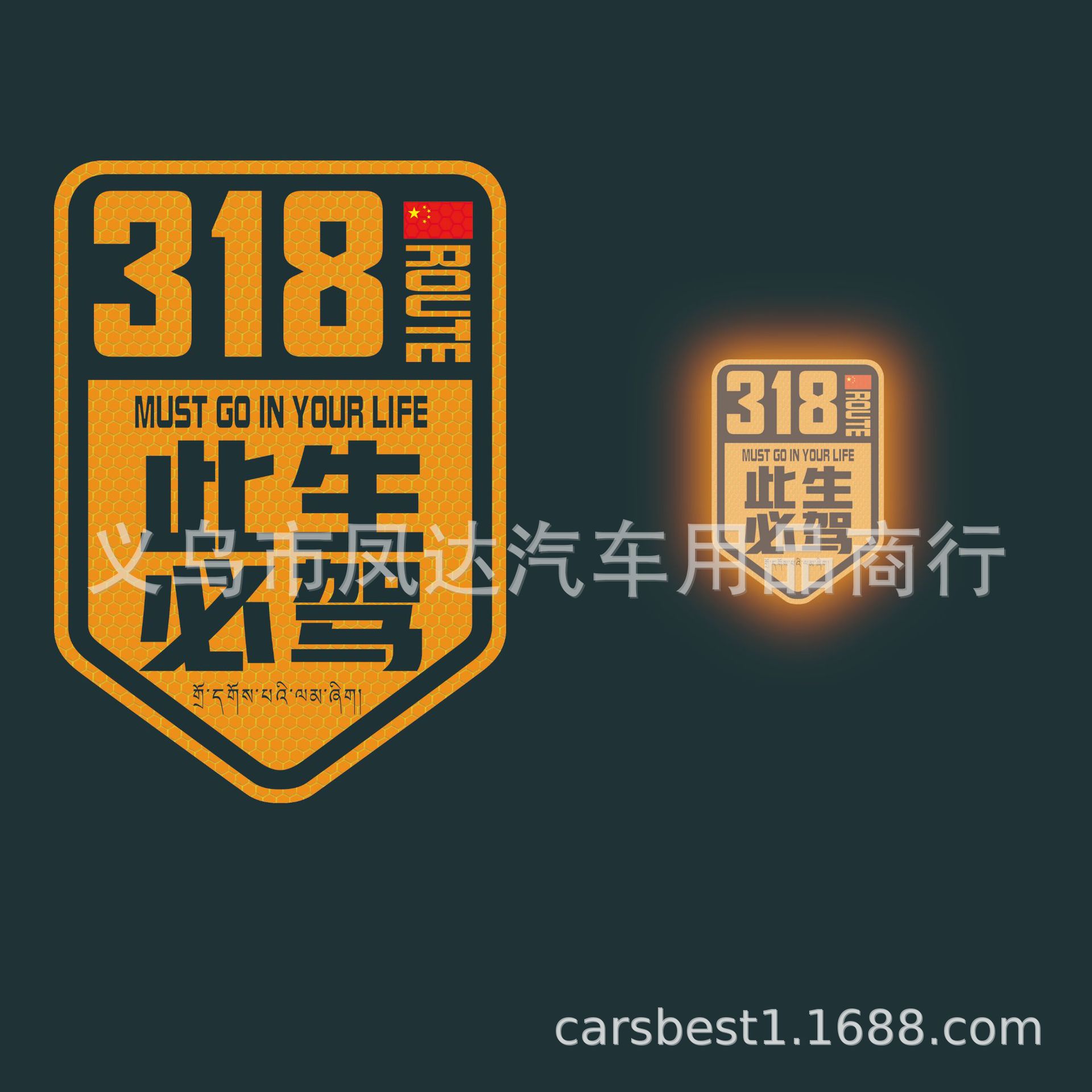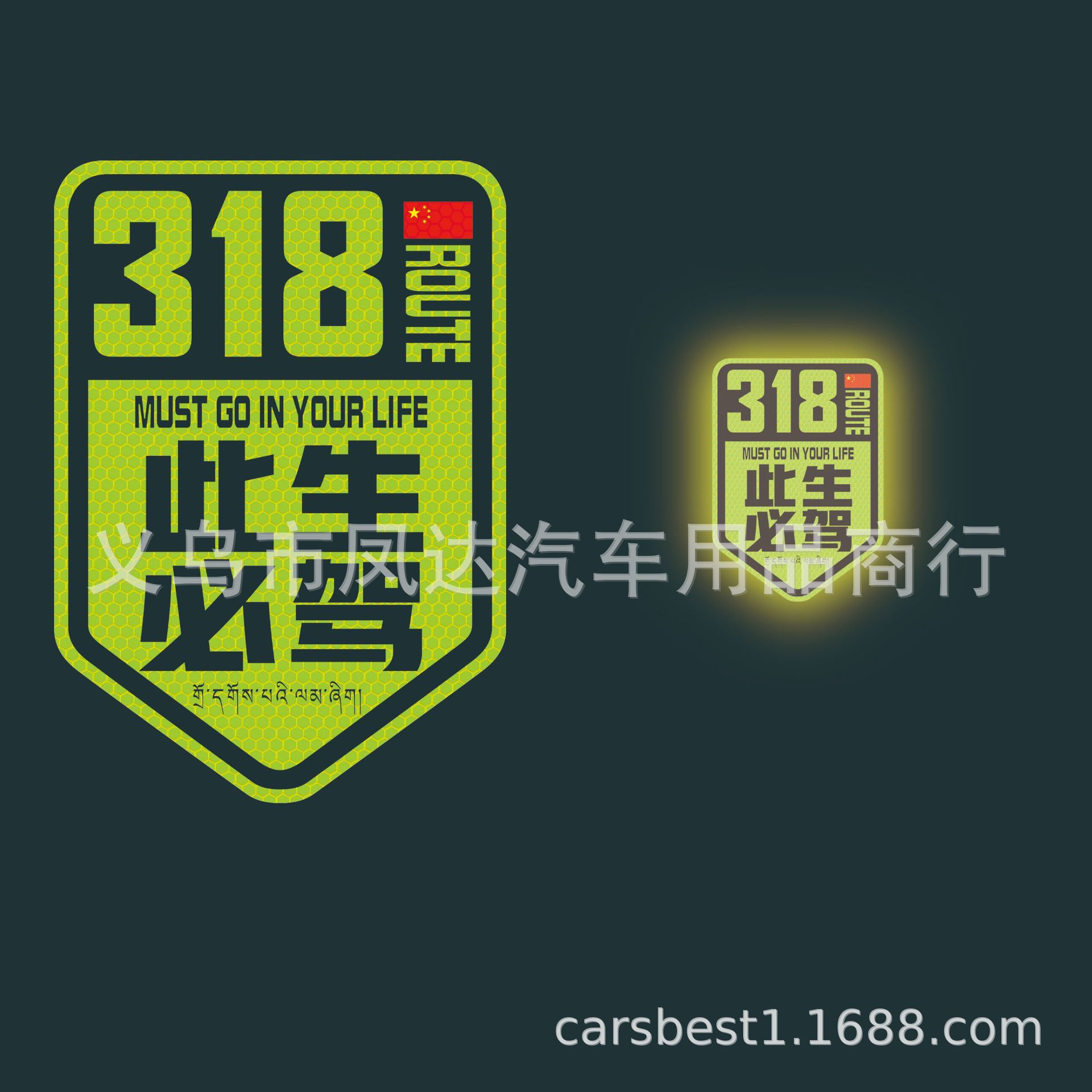 이번 생애 꼭 타야 할 국도 G318 벌집형 자석 반사 차량 스티커, 자가운전 여행용 텍스트 스크래치 커버, 가공 가능스토어 가기