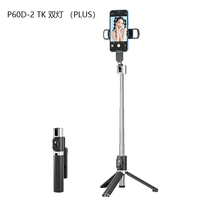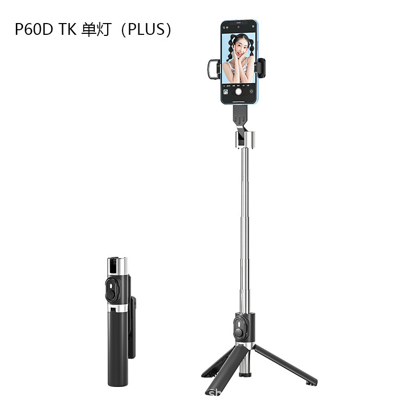 공장 도매 P60 블루투스 가벼운 흔들림 방지 안정 휴대 전화 텔레스코픽 폴 플로어 삼각대 통합 셀카 스틱