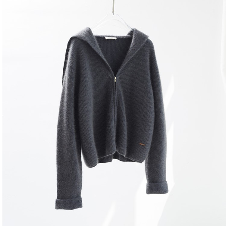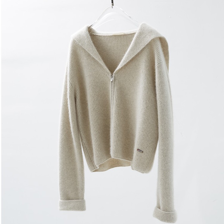 24 가을 겨울 신상 여성 울 가디건 네이비 칼라 지퍼 두꺼운 스웨터 슬림핏 루즈핏 울 코트 대형 사이즈스토어 가기
