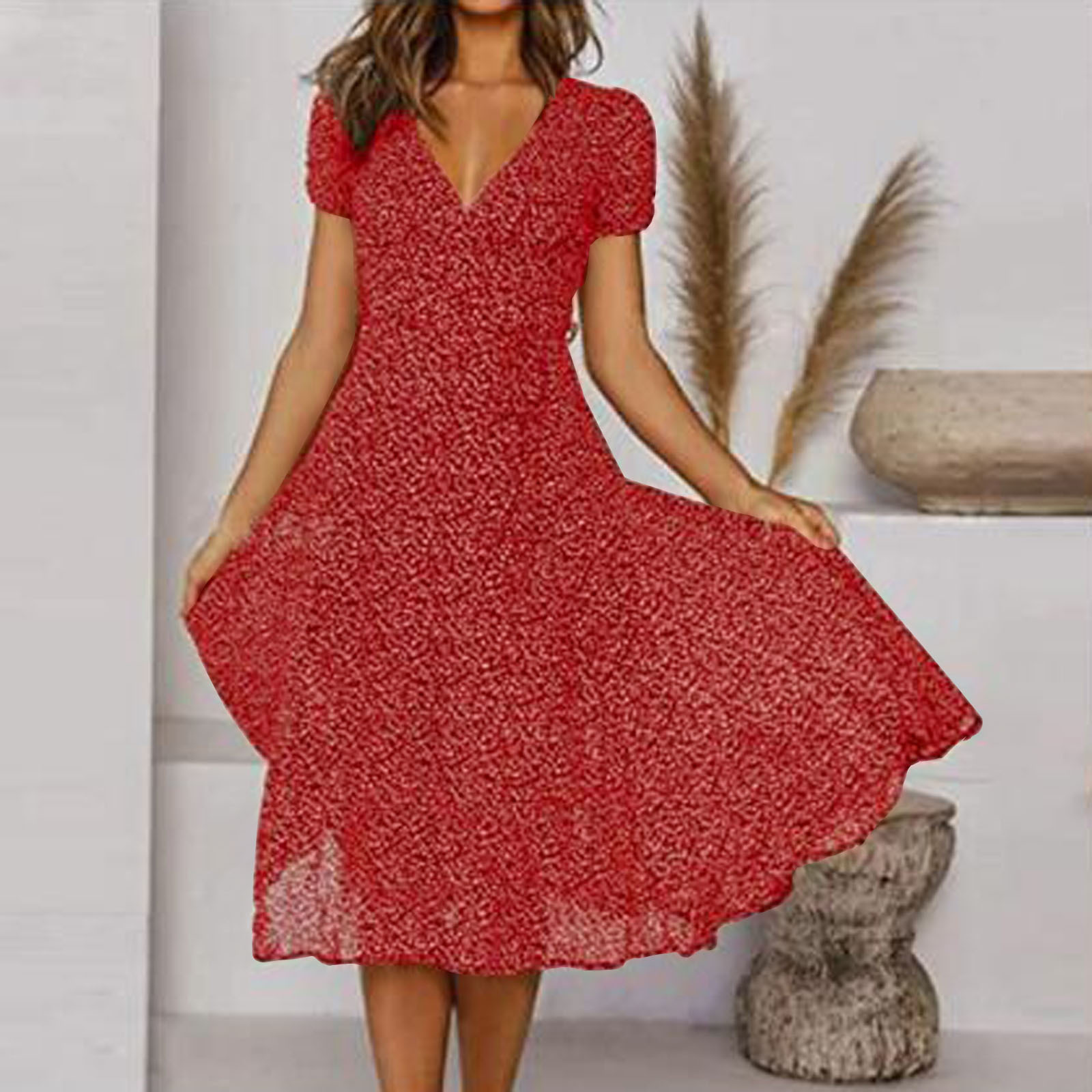 2023 봄과 여름 크로스 보더 여성 의류 eaby 아마존 폭발 반팔 V-넥 섹시한 꽃 무늬 인쇄 원피스스토어 가기