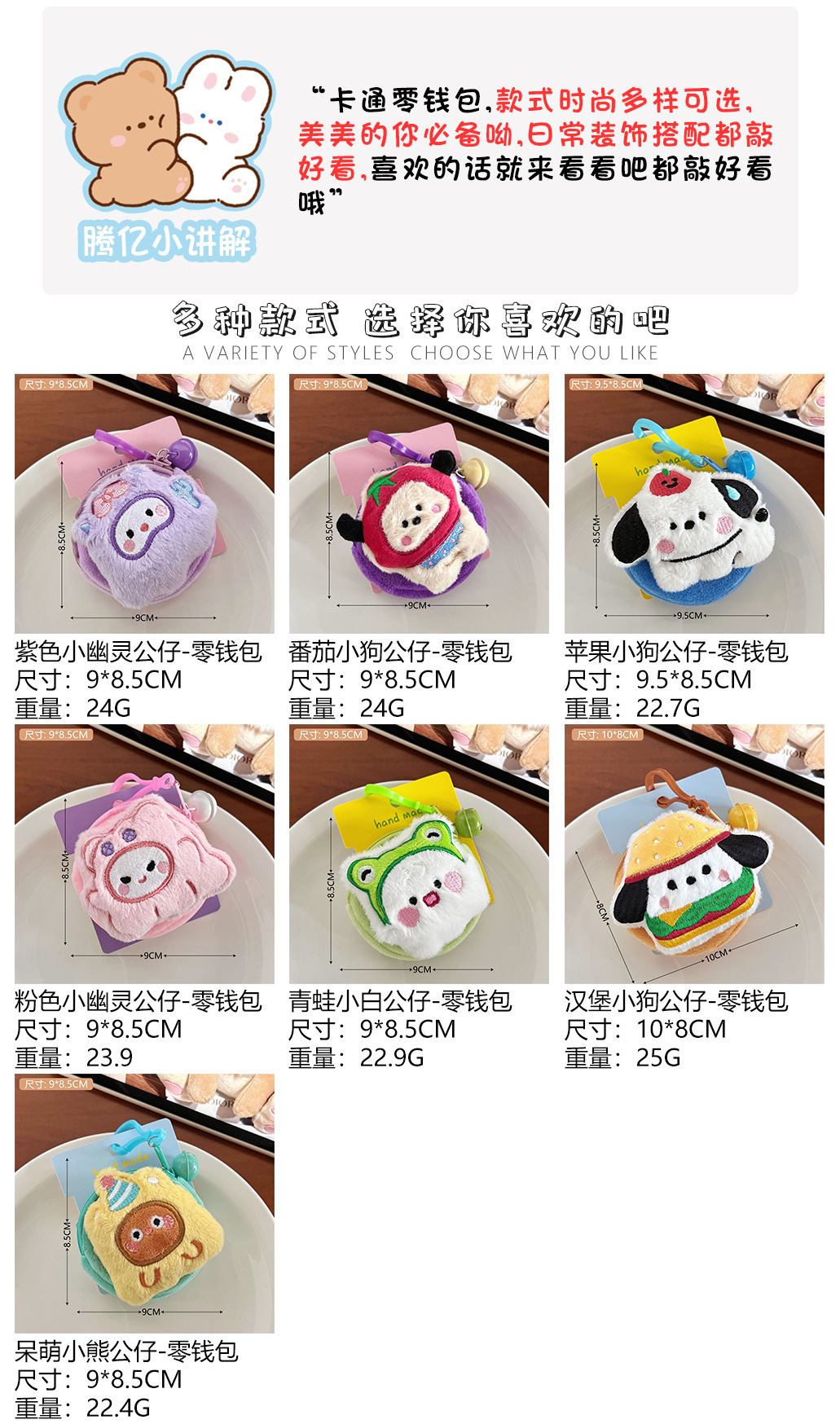 새로운 창의적인 귀여운 봉제 인형 동전 지갑 다기능 동전, 이어폰, 립스틱 보관 가방 열쇠고리 장식품