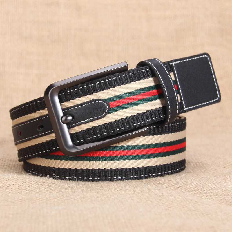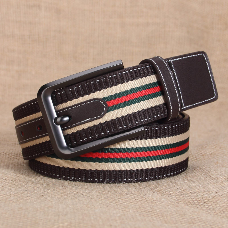 남성용 천연 가죽 캔버스 벨트 3.8CM 폭 핀 버클 다용도 캐주얼 바지 벨트 청바지 캐주얼 한국 스타일 남성용 가죽 벨트스토어 가기
