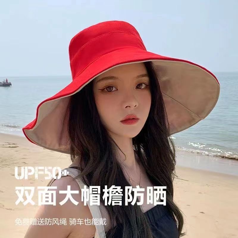 큰 챙 모자 여성 여름 햇빛 가리개 모자 자외선 차단 어부 모자 한국 스타일 패션 다용도 자외선 차단 모자