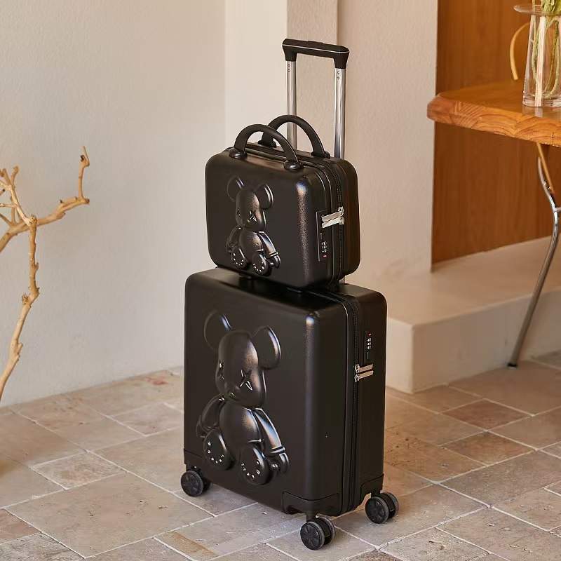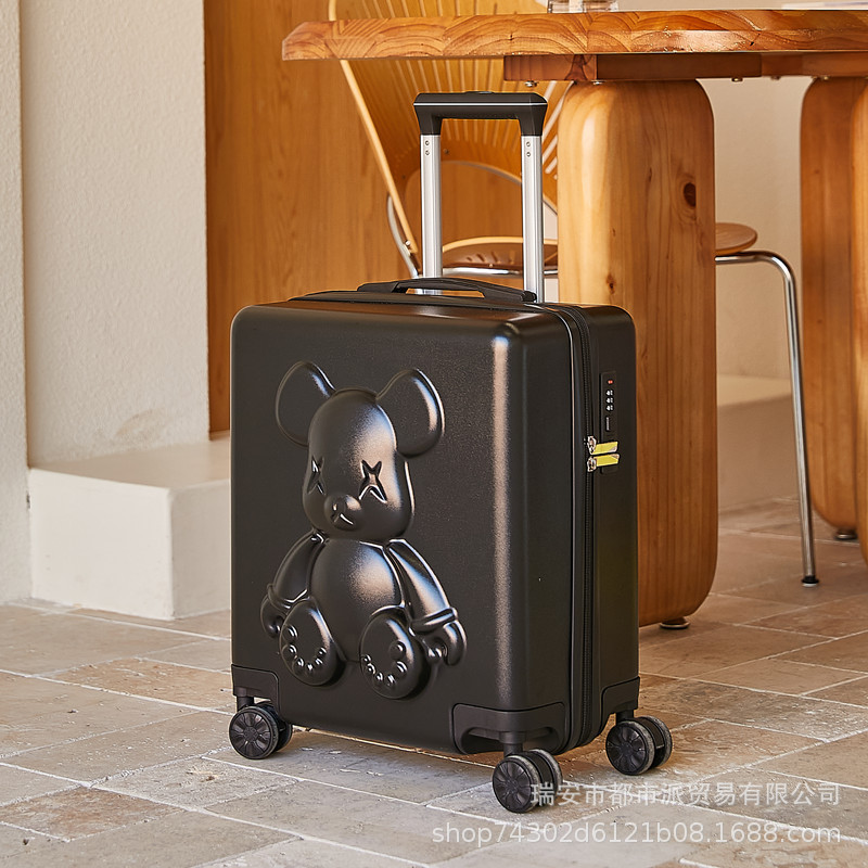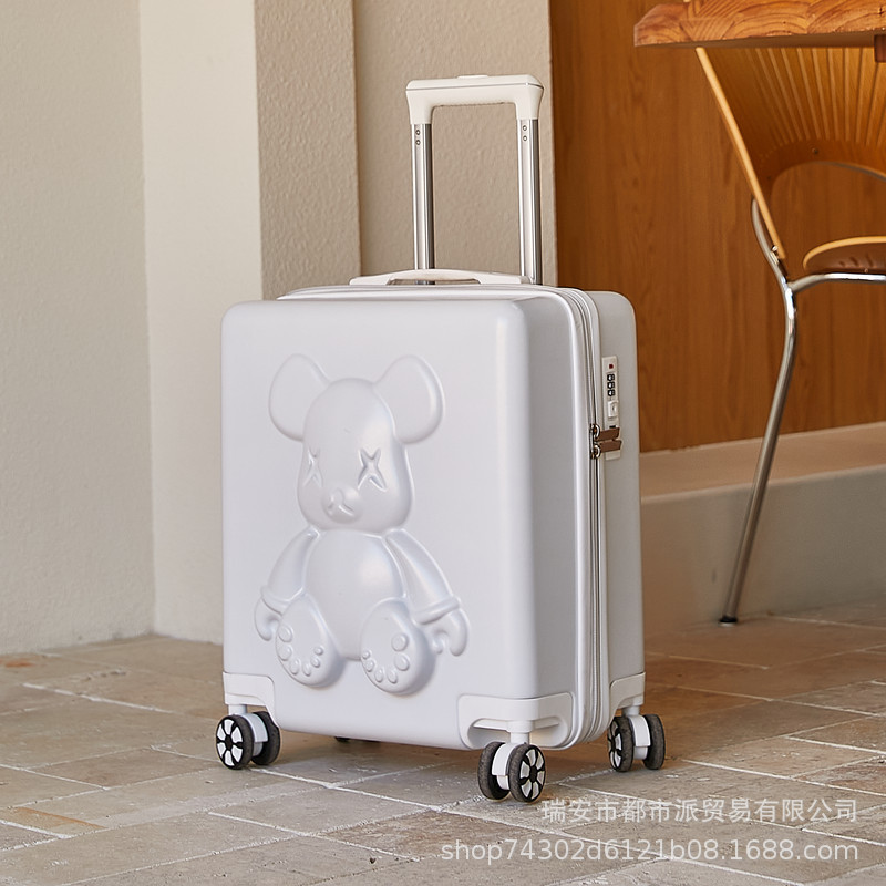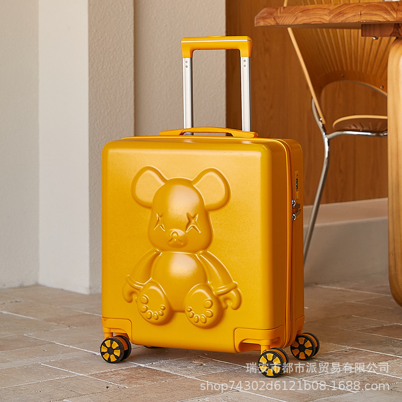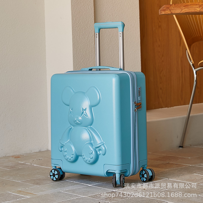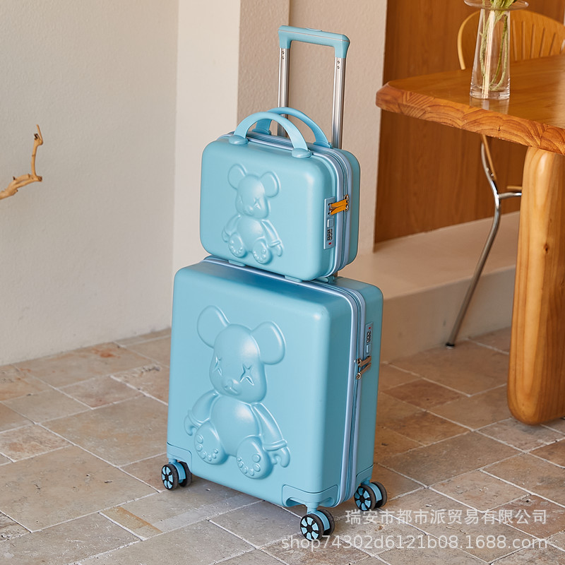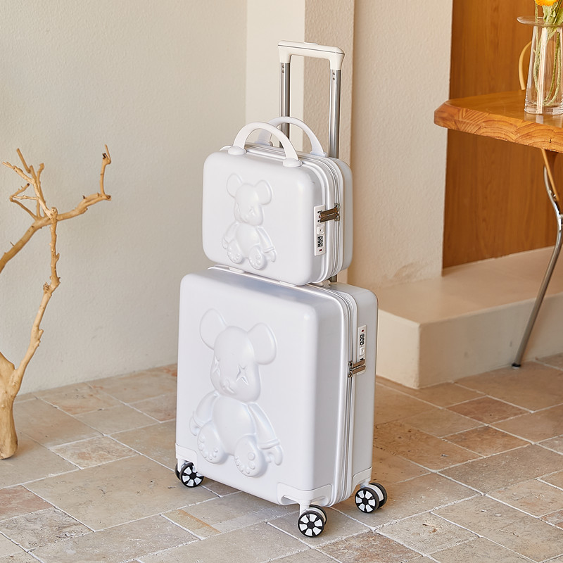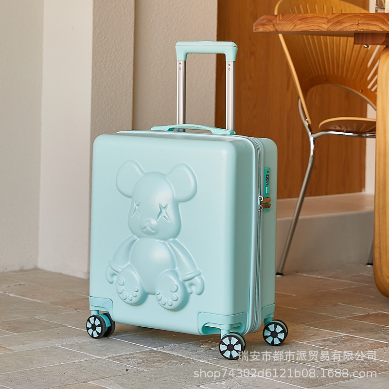 곰돌이 모양 트롤리 캐리어 18inch 여성용 여행가방, 회전바퀴, 비밀번호 잠금, 학생용 여행가방, 마카롱 색상, 기내용 캐리어스토어 가기