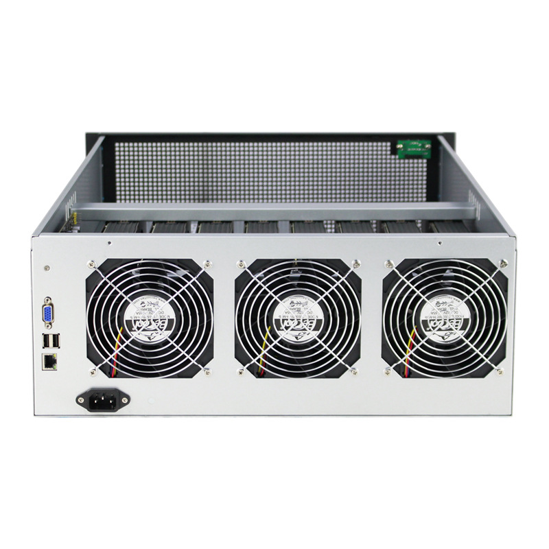 配置:E08-50机箱;IDC8卡底板(PCI间距50mm)板载CPU;DDR3 4G笔记本内存,MSATA 64G系统盘;显卡线8条;2U2400W电源; 兼容显卡:588/580/570/1660S/2060S /3060TI/3070/3080公版/3090公版显卡均可使用;