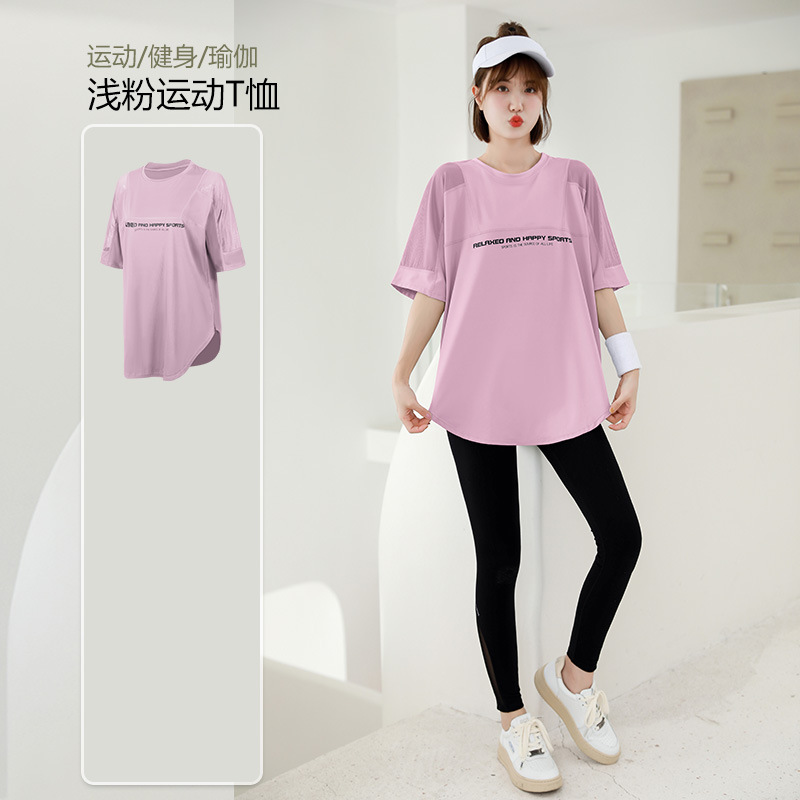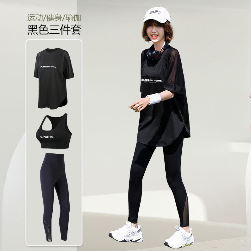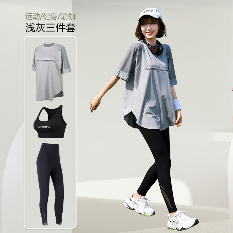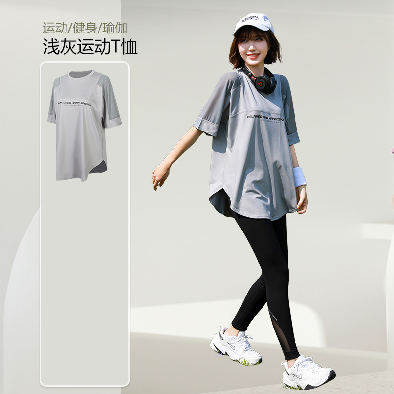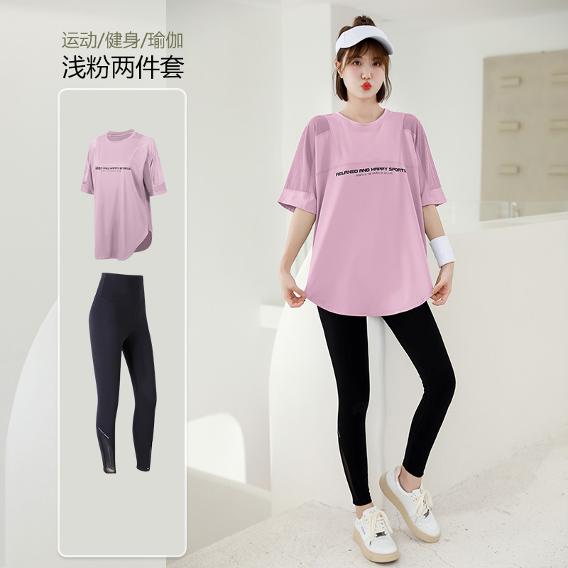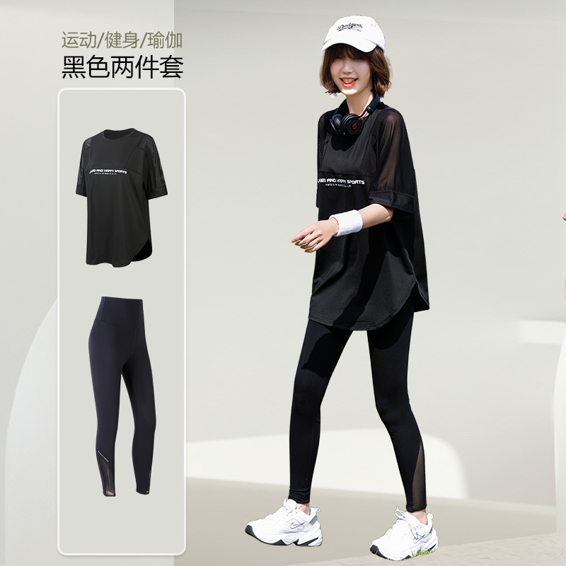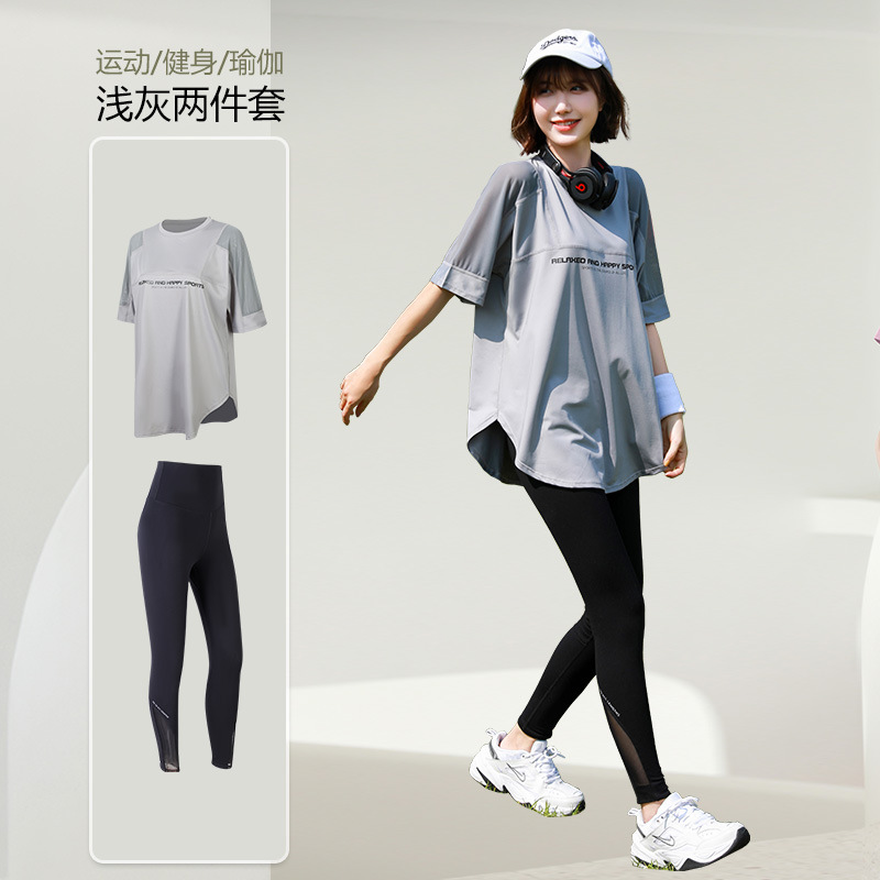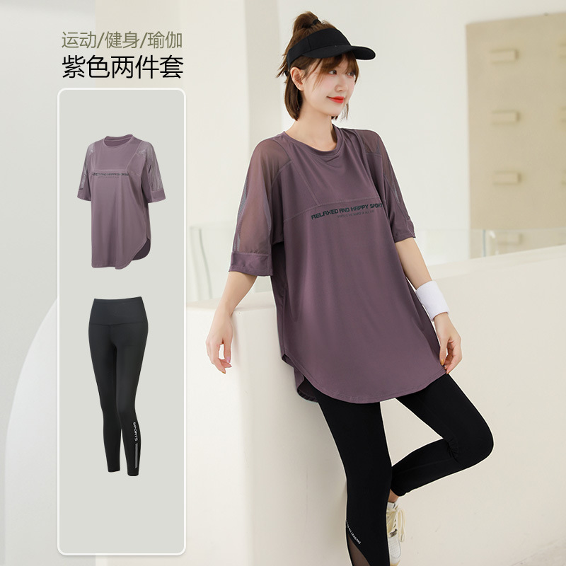 요가 의류 여자의 여름 얇은 속건 반팔 세트 플러스 사이즈 실행 피트니스 의류 뚱뚱한 mm200 진 느슨한스토어 가기