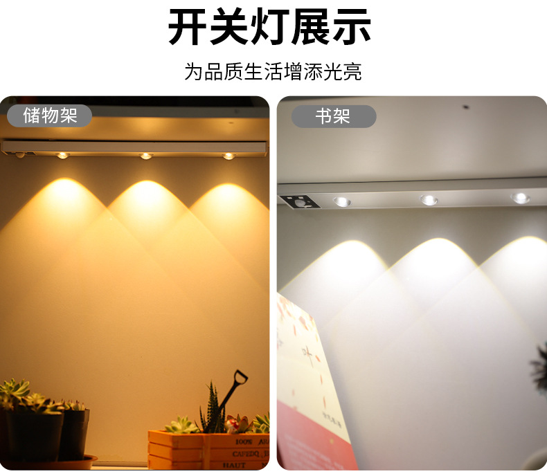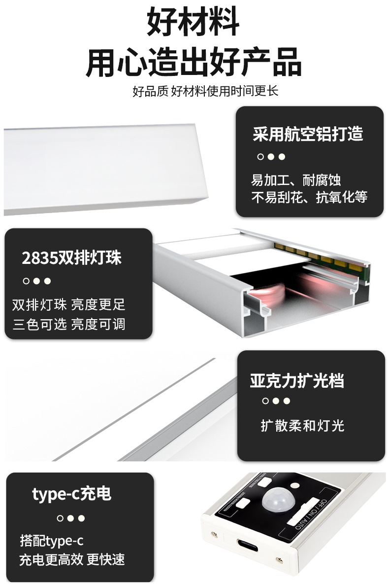 초박형 인체 센서 램프, 배선이 필요 없는 자기 흡입 LED 충전식 야간 조명, 긴 배터리 수명, 복도 및 침실용 스트립 조명