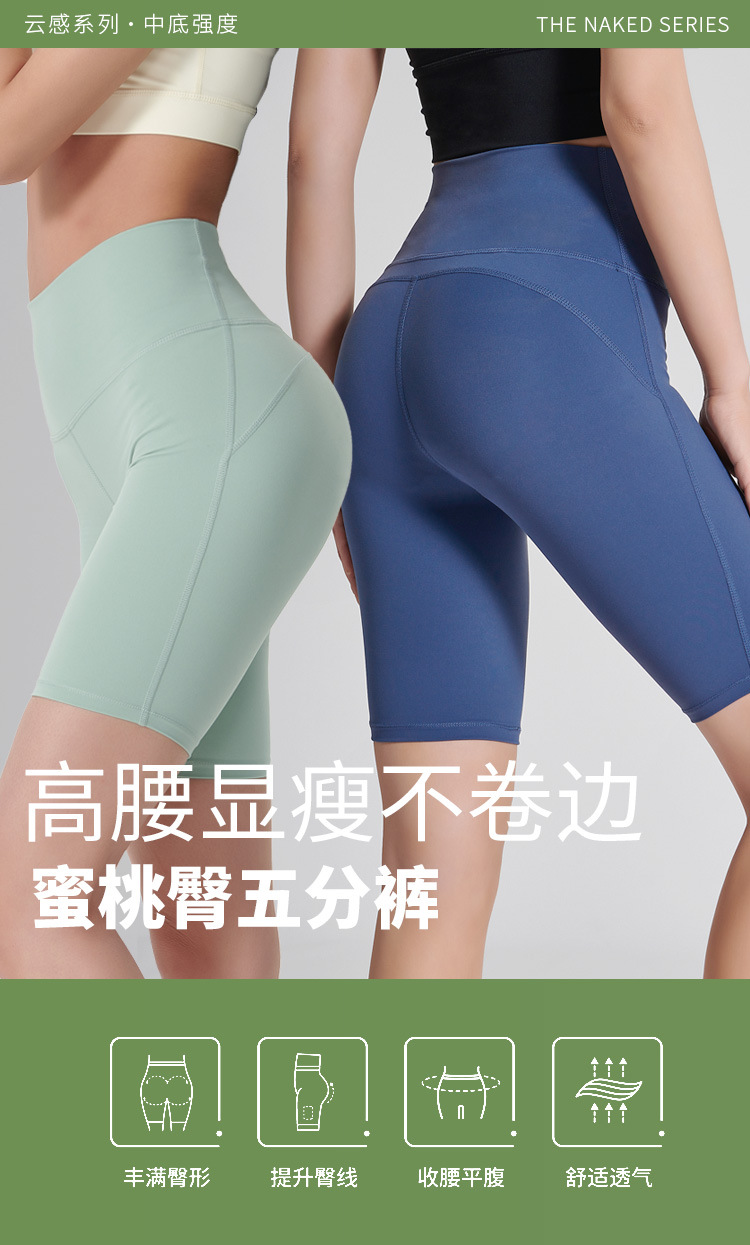 여름 시원한 스포츠 땀 흡수 피트니스 사이클링 바지 꽉 끼는 하이 웨이스트 엉덩이 리프팅은 바닥 5점 요가 외부에 착용 가능