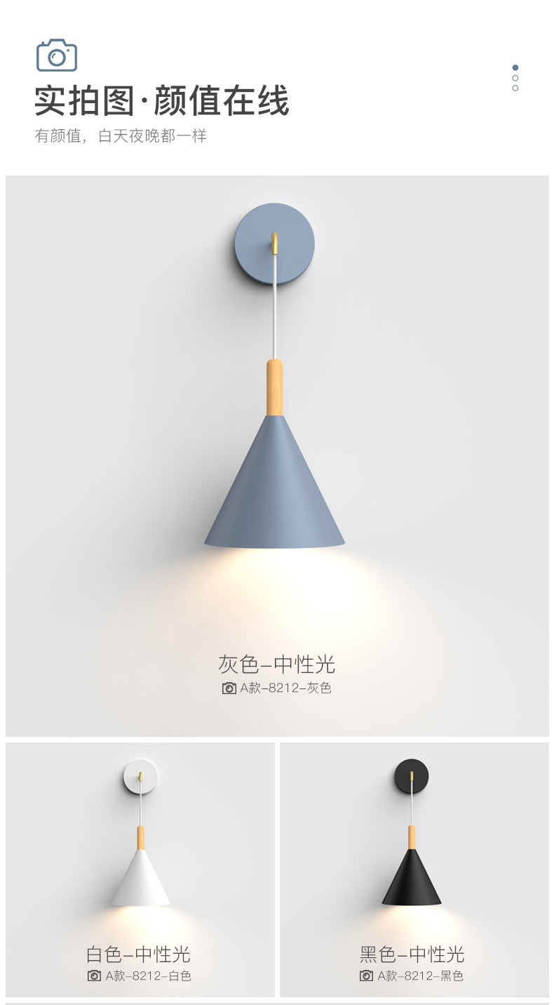 벽 램프 침실 침대 옆 램프 북유럽 거실 단일 헤드 벽 램프 창조적 인 현대 간단한 램프 복도 벽 램프