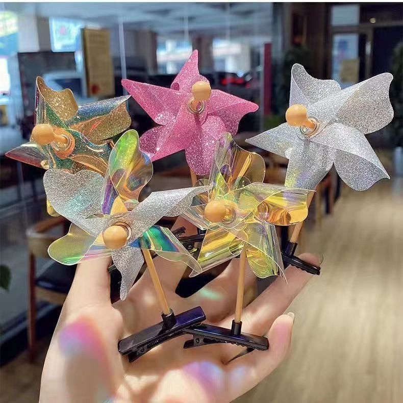 같은 스팽글을 흔들어 레이저 풍차 머리핀 회전 귀여운 귀여운 귀여운 어린이 장난감 푸시 활동 선물