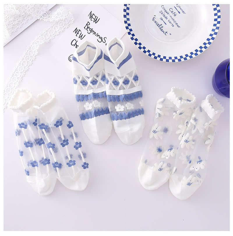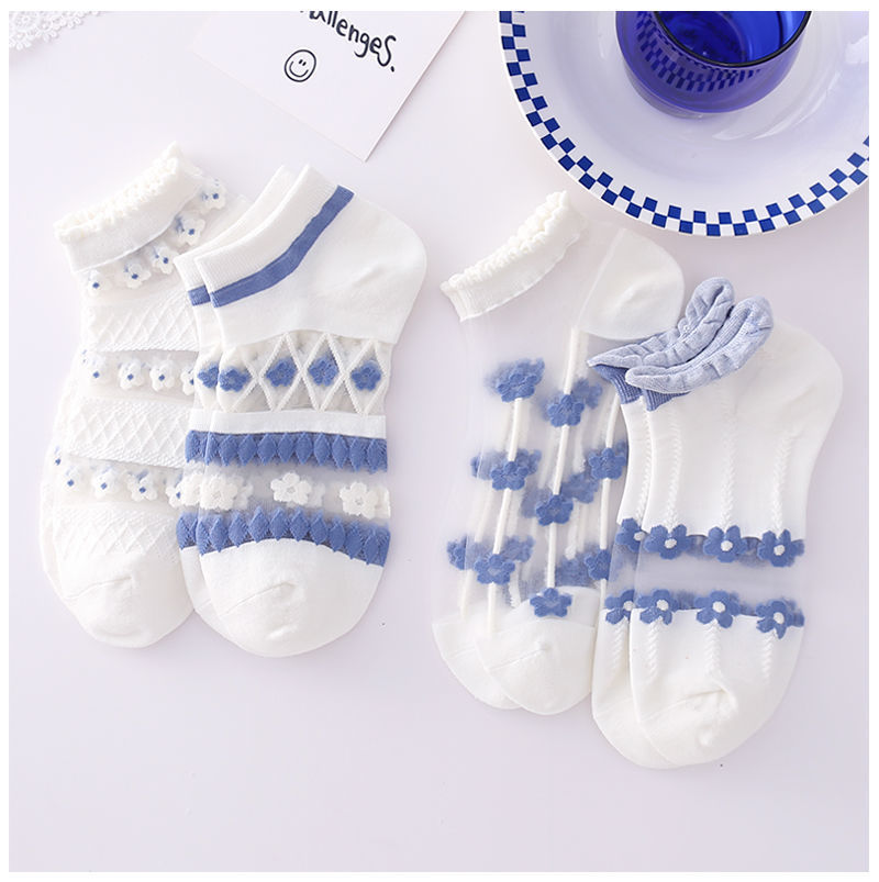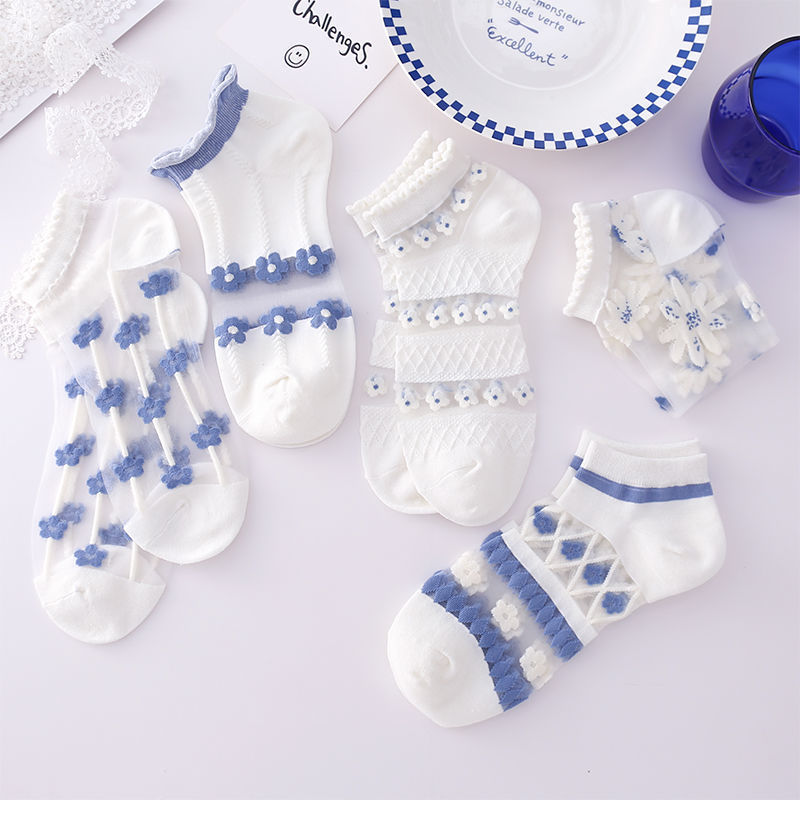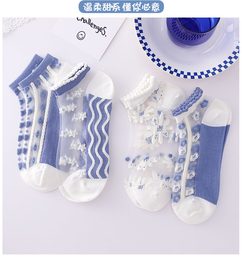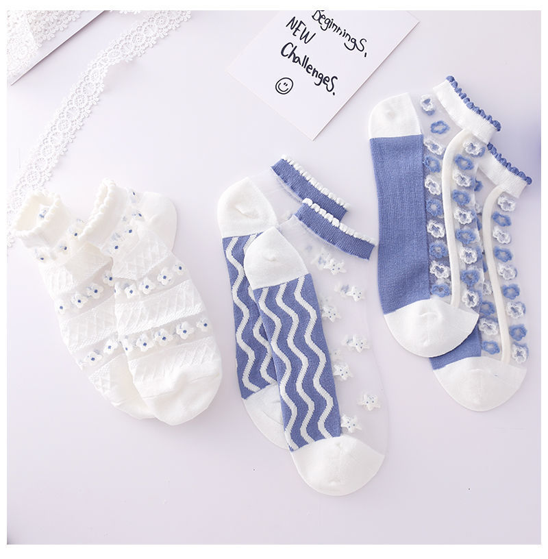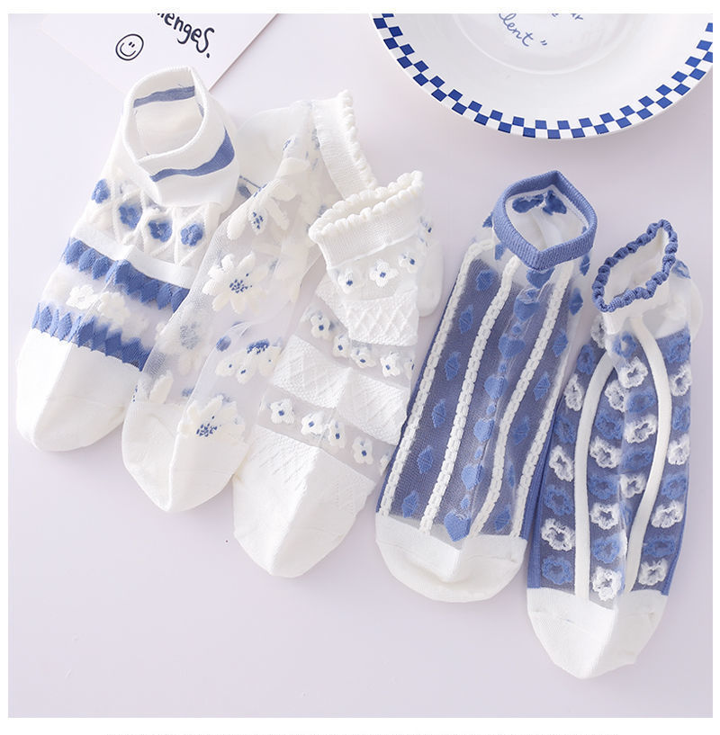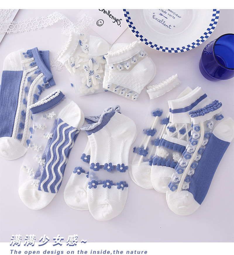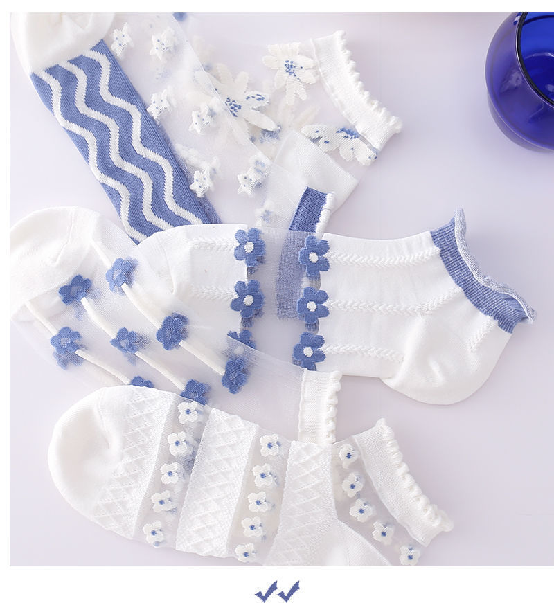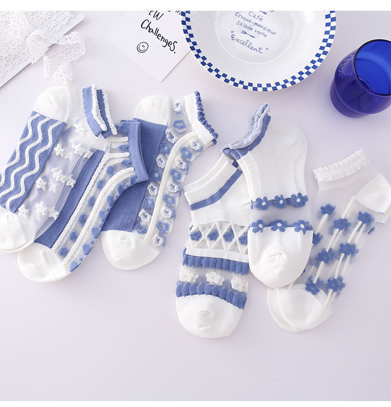 여성용 양말 여름 얇은 양말 시원한 통기성 중공 유리 스타킹 초박형 메쉬 학생 실크 양말