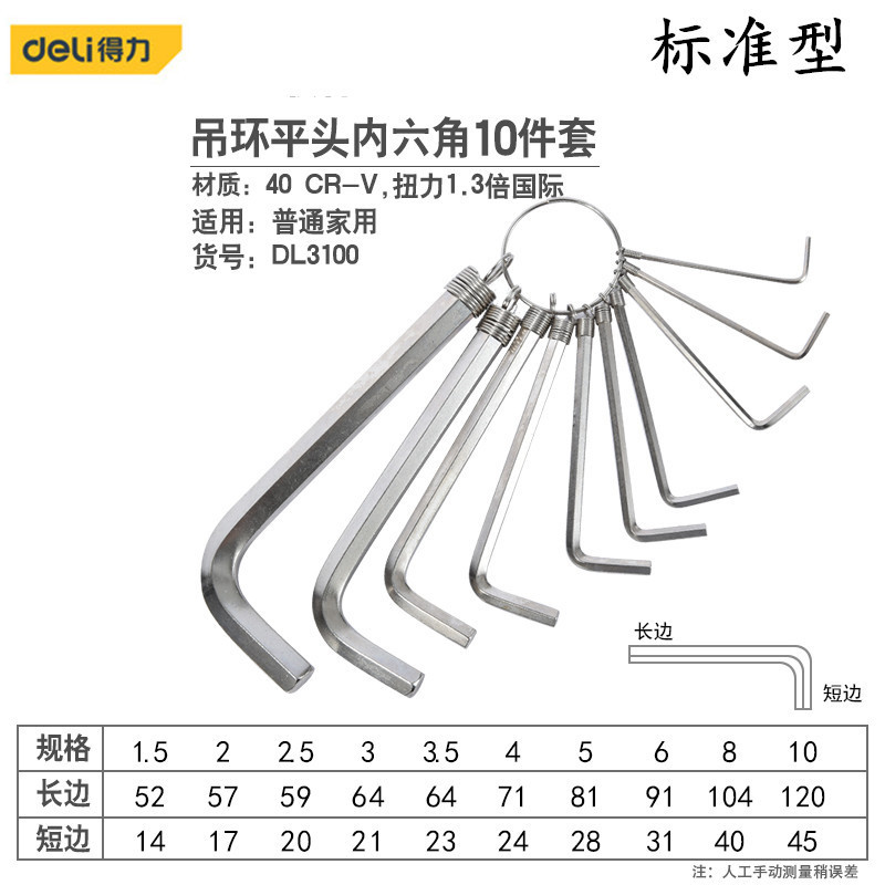 델리 육각 키 플랫 헤드 육각 내부 육각 미터법 인치 육각 렌치 도매 알렌 렌치