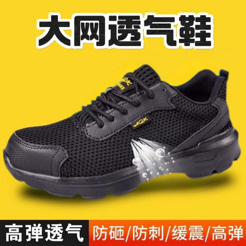 여름 통기성 노동 보호 신발 미끄럼 방지 내마모성 경량 안전 솔리드 솔 스매싱 방지 스매싱 방지 플라이 저항 메쉬 작업 신발스토어 가기